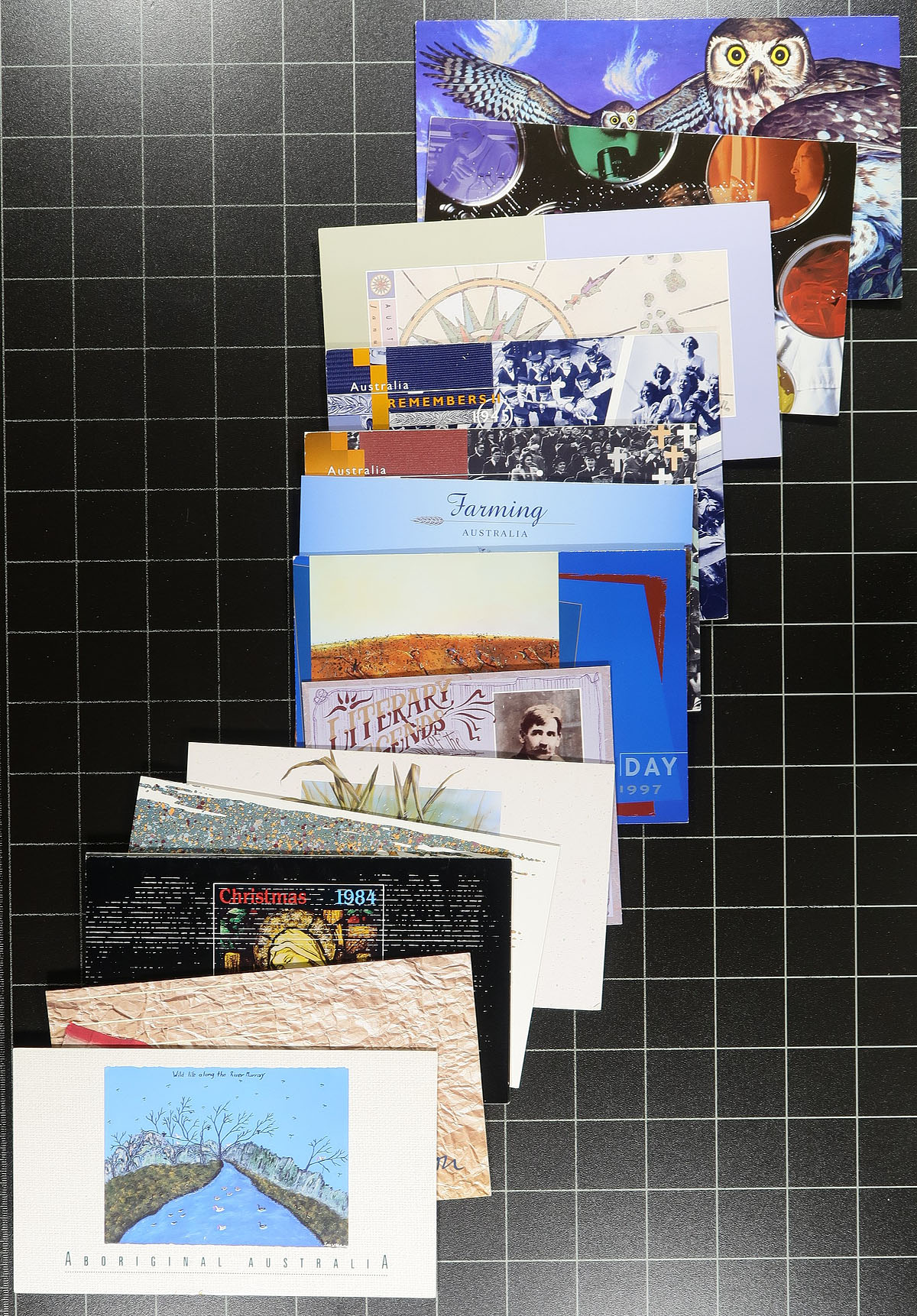 Accumulation of never hinged material, 1970's-1990's, containing a nice variety of items. We note roughly 80 presentation packs (appears to have little duplication), sets and a few souvenir sheets in glassines, stock and album pages, a few booklets, along with a few duck and conversation stamps. A spot check indicated some material cataloguing $10 and up, with face value alone totaling AUD$252.00. A lovely lot, especially for thematic and topical collectors, clean and very fine. Estimate =