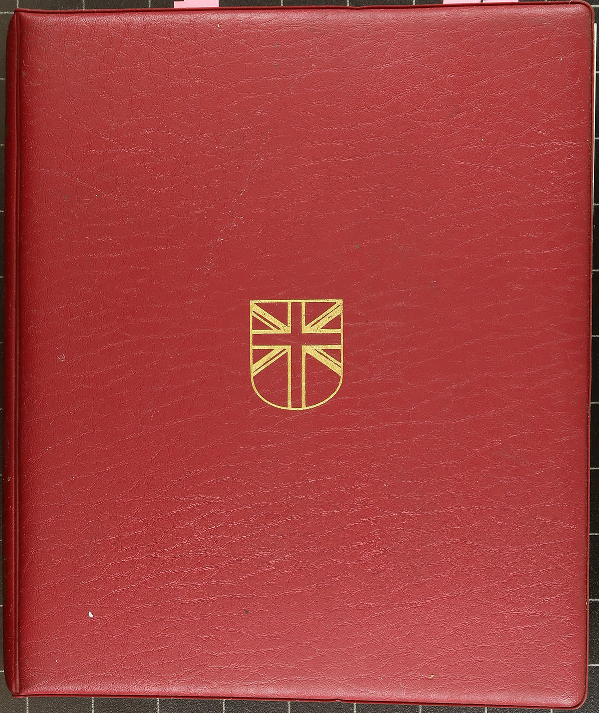 Fine collection of mint Great Britain, 1924-1989, containing many hundreds of stamps all in hingeless mounts in a Stanley Gibbons album. This neatly organized collection generally ranges from Scott #185/1284, including a very good representation of Machins in period, and a few souvenir sheets. A spot check indicated a mix of hinged and never hinged material up to the 1960's, with never hinged material post 1970, noting 98% completion from 1972 to 1989. We note a few better items with #s 251A, 275 (nh, $75 total), 286-289 (lh, $80 total), 292-308 (lh, $101 total), along with a few sets cataloging $10 and up each, with face value estimated to be in the £75 to £100 range. A nice starter collection with some better material within, a slight odor on the pages from storage, but does not appear to affect the stamps, overall fine to very fine. Estimate =