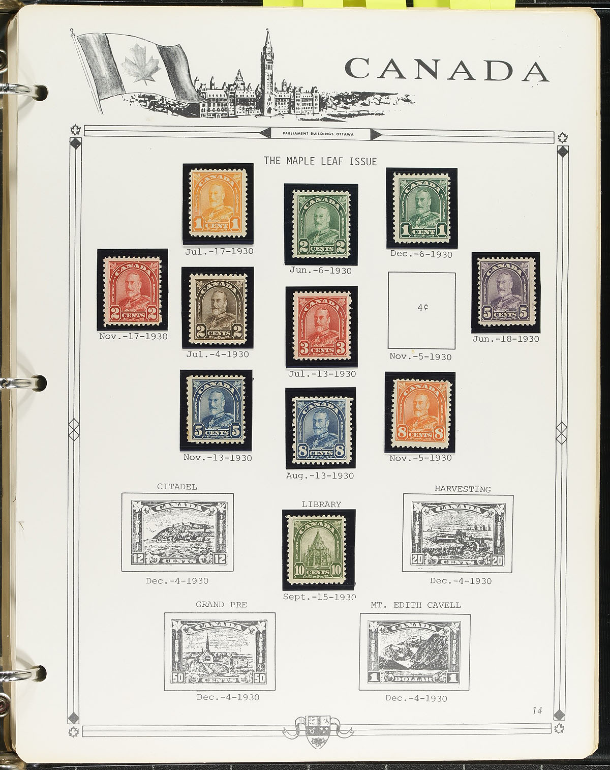 Collection of mint Canada, 1897-1972, containing a few hundred stamps all in hingeless mounts in a Parliament album. The collection generally ranges from Scott #50/550 (does include #s 15, 34, 35, with varying faults, not considered), along with selections of back of the book issues. We note a few better issues including Jubilees 1/2c to 8c, 5c Edward, a few Admirals including #s 111, 119 (mh, $320 total), along with a few stamps and sets cataloguing $10 and up. A spot check indicated primarily hinged material, along with a few no gum stamps, with never hinged material possible post 1950. A good starter mint collection, a few faults with the early issues, noting a slight odor on the pages from storage, but does not appear to affect the stamps, overall fine to very fine. Estimate =