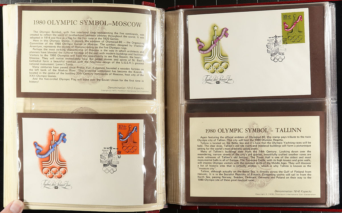 Lovely collection of sports related stamps and covers, containing many hundreds of items in a variety of formats including the Philatelic Tribute to the 1988 Olympic Games, Winter Olympic Games (2 volumes with hundreds of stamps and covers), 1980 Olympic first day covers, two stockbooks full of stamps and souvenir sheets, and a small plastic bag with sports related souvenir sheets. A nice lot for the sports and Olympics enthusiast, ideal for topical and thematic collectors, overall fine to very fine. Estimate =