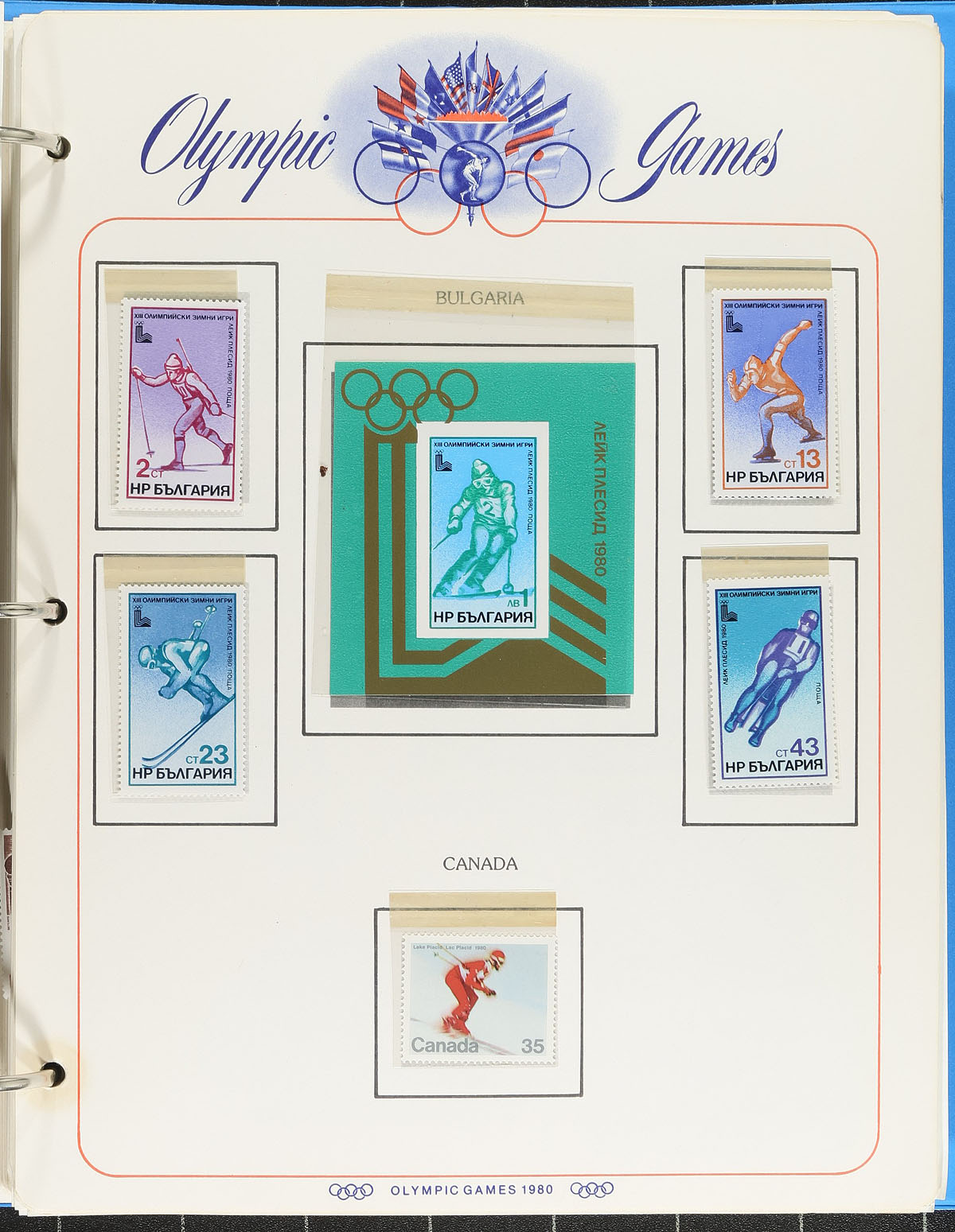 Lovely collection of sports related stamps and covers, containing many hundreds of items in a variety of formats including the Philatelic Tribute to the 1988 Olympic Games, Winter Olympic Games (2 volumes with hundreds of stamps and covers), 1980 Olympic first day covers, two stockbooks full of stamps and souvenir sheets, and a small plastic bag with sports related souvenir sheets. A nice lot for the sports and Olympics enthusiast, ideal for topical and thematic collectors, overall fine to very fine. Estimate =