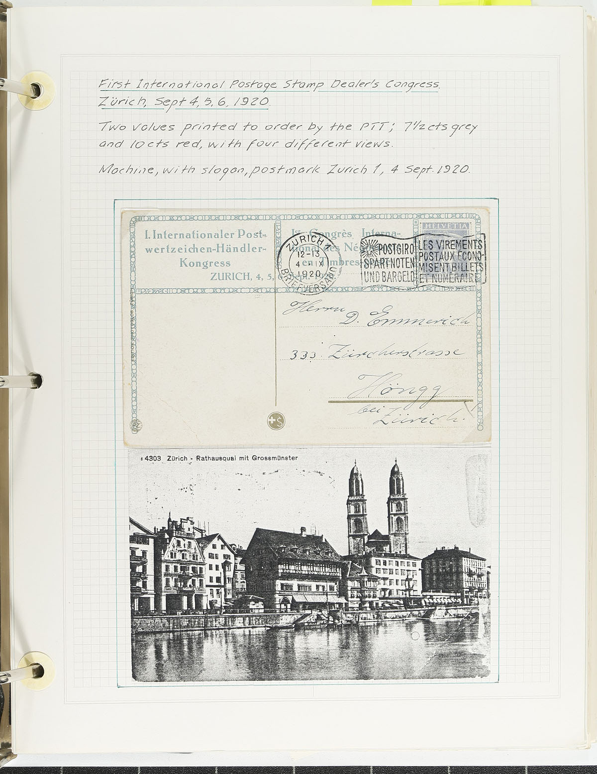 Postal History. Intriguing collection of Switzerland postal stationery, 1915-1994, containing 73 items neatly written up on pages for various exhibitions (from Pipex 1979 to 1994). We note used and unused items including for special events, private and official postcards, first flights and more. All of the items are well identified with the occasional write up by the owner. We note some items that would retail $10 to $20 today, with the owner's 2003 Michel catalogue value for the lot totaling 179.00 Euros. A nice specialty lot and an exhibit that should be expanded, overall fine to very fine. Estimate =