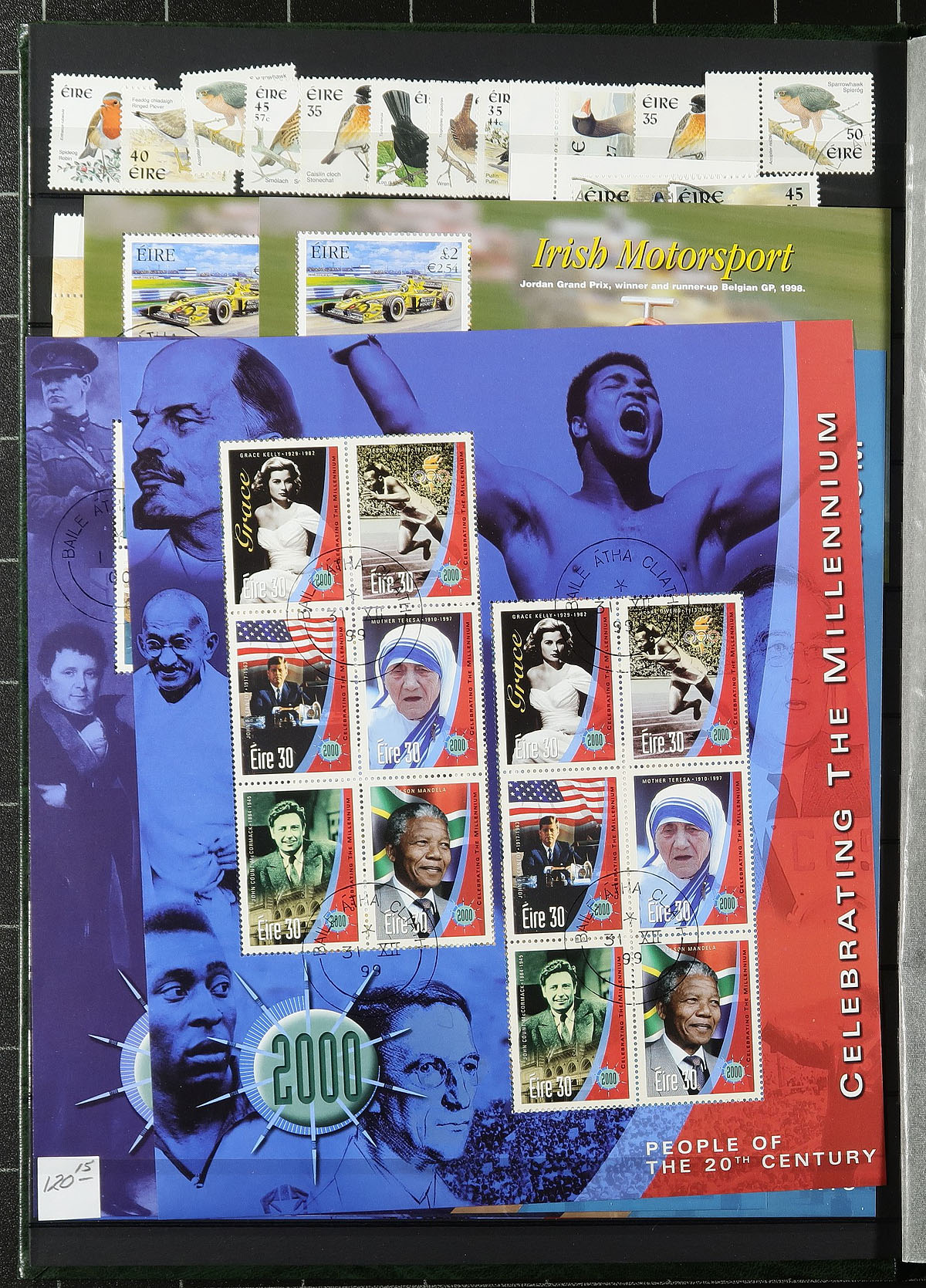 Comprehensive collection of never hinged and used Ireland, 1990-2001, containing many hundreds of stamps neatly arranged in a stockbook. The collection generally ranges from Scott #767/1339, seemingly containing a mint and a used (post office cto cancel), example for the majority of issues, including souvenir sheets, self-adhesive singles and strips, etc. A period of which the issues add up quickly in the catalogue! A very nice collection that should be continued, overall very fine. 2026 Scott US$1,558.00 =