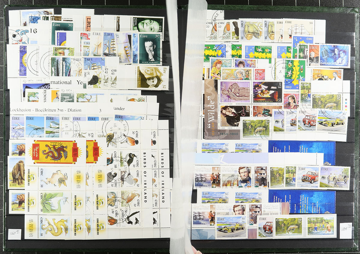 Comprehensive collection of never hinged and used Ireland, 1990-2001, containing many hundreds of stamps neatly arranged in a stockbook. The collection generally ranges from Scott #767/1339, seemingly containing a mint and a used (post office cto cancel), example for the majority of issues, including souvenir sheets, self-adhesive singles and strips, etc. A period of which the issues add up quickly in the catalogue! A very nice collection that should be continued, overall very fine. 2026 Scott US$1,558.00 =