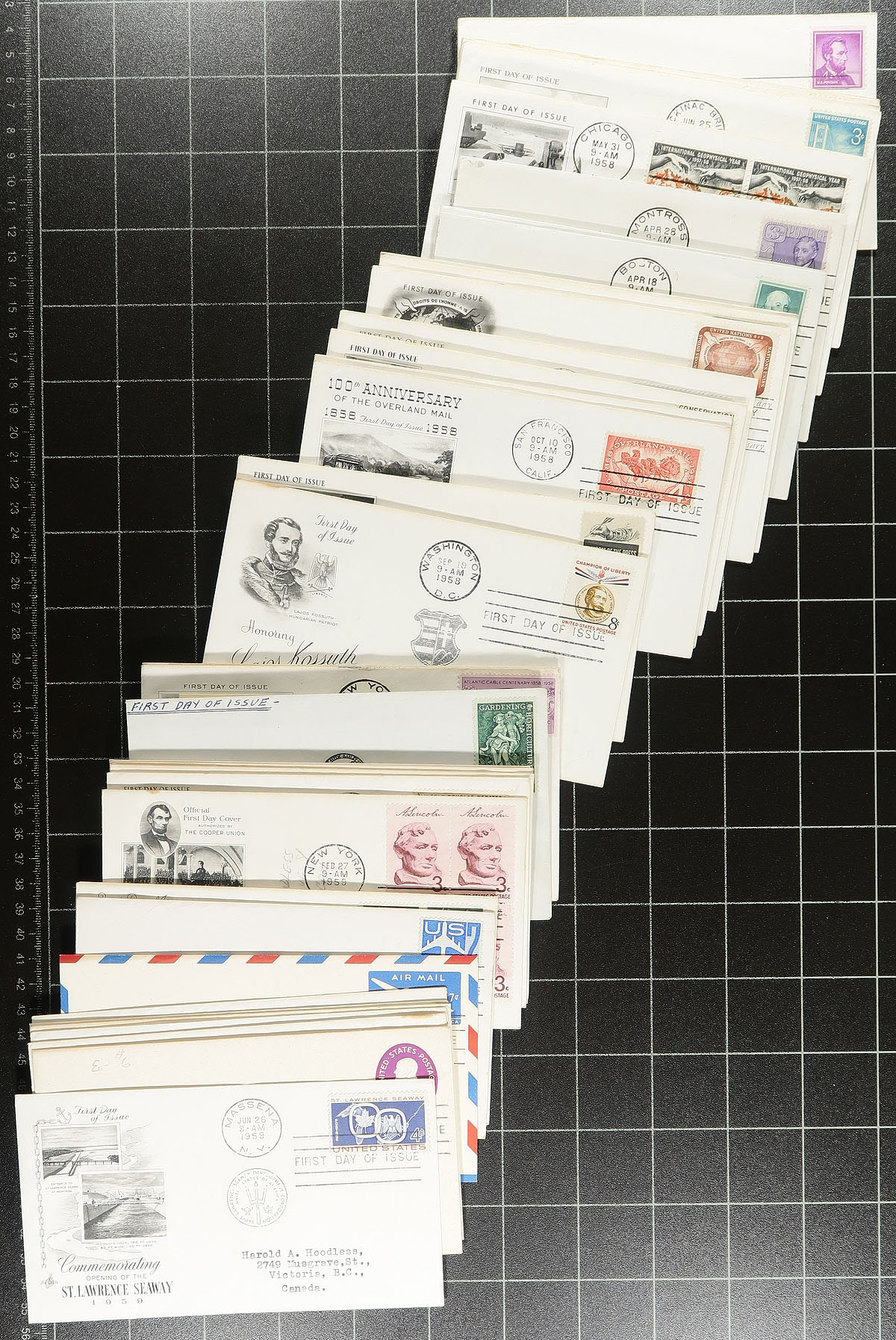 Lovely assortment of roughly 500 United States first day covers, 1930's-2000's, loose in a box. We note a nice variety of items noting singles, blocks, plate blocks, booklet panes, souvenir sheet, and high denomination frankings. Many of the covers have privately made cachets from Art Craft, Fleetwood, STC, Cachet Craft, C. Stephen Anderson, and more. Most of the covers retail $1 to $3 each, along with some in the $10 to $20 range. A nice lot for collectors and dealers alike. Estimate =