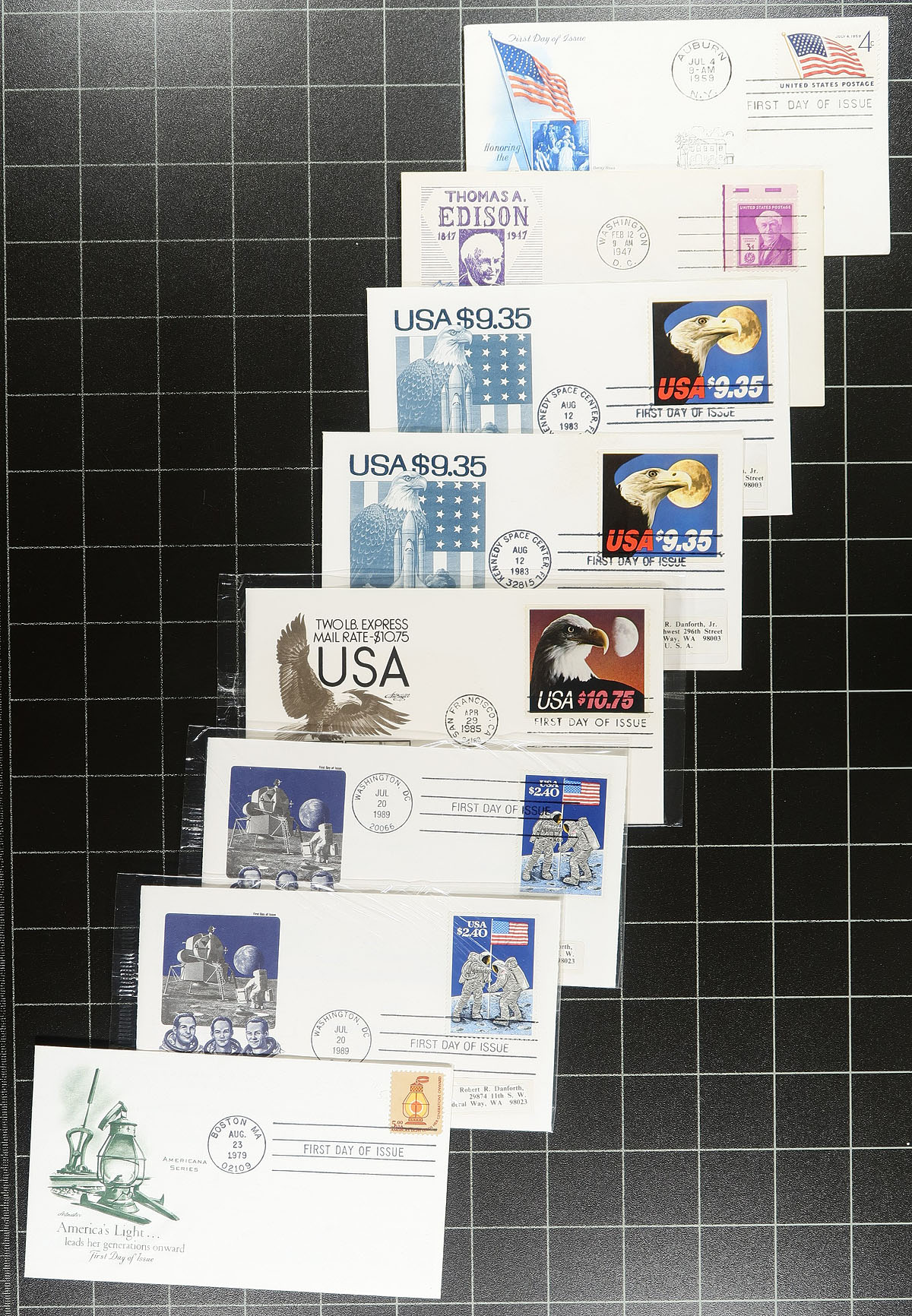 Lovely assortment of roughly 500 United States first day covers, 1930's-2000's, loose in a box. We note a nice variety of items noting singles, blocks, plate blocks, booklet panes, souvenir sheet, and high denomination frankings. Many of the covers have privately made cachets from Art Craft, Fleetwood, STC, Cachet Craft, C. Stephen Anderson, and more. Most of the covers retail $1 to $3 each, along with some in the $10 to $20 range. A nice lot for collectors and dealers alike. Estimate =