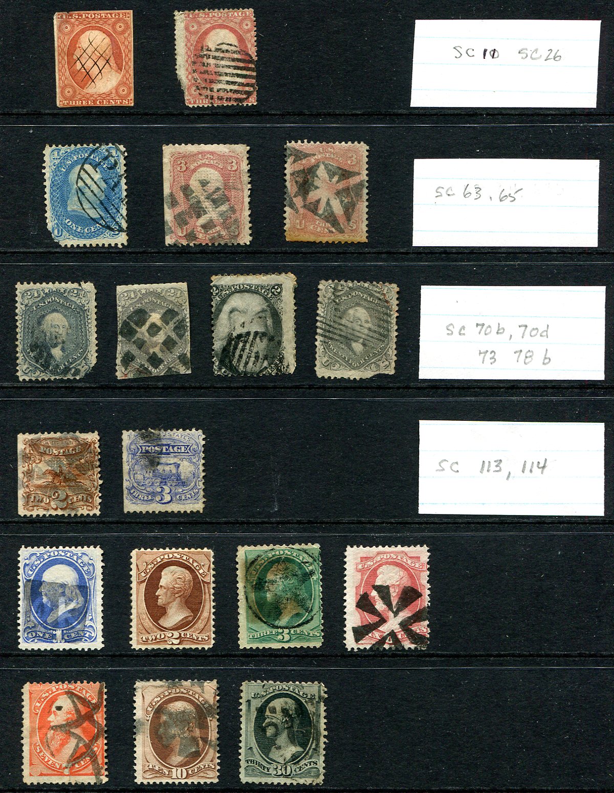 A used selection of thirty-nine stamps, 1850's-1880's, neatly arranged on a pair of stockpages. While some of these issues are obviously faulty, this still represents a good study of the often confusing issues. Estimate =