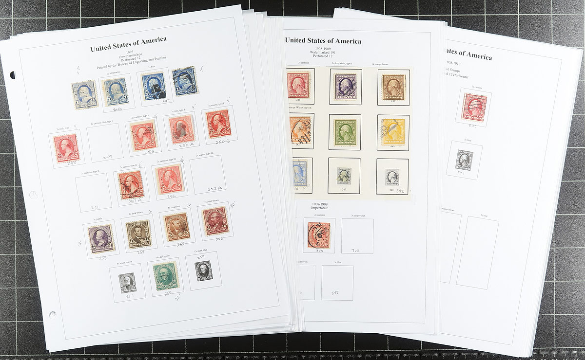 Collection/Accumulation 1894-1969 covering 75 years of American issues. A mix of both mint and used, Classic through 1960s period collection of stamps and souvenir sheets mounted on pages, mixed condition (expect some faults) but includes better used "Back of the Book" (mostly airmails, with run into the 1990's, plus postage dues, revenues etc). Looks like a good collection to be built upon. Estimate =
