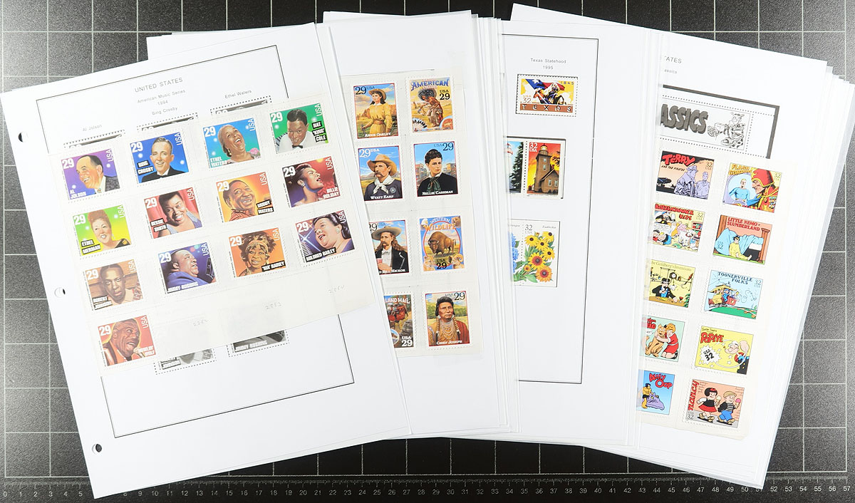 In-depth mostly mint collection 1970-2008, neatly arranged on a variety of album pages, both "hinged" and "hingeless" pages, sorted by time-period into folders. Includes the many large colourful sets, souvenir sheets etc from the period, with our estimated face value alone likely near US$800.00. A wonderful strong "foot in the door" collection, which would be hard to duplicate at our reasonable estimated value. Estimate =