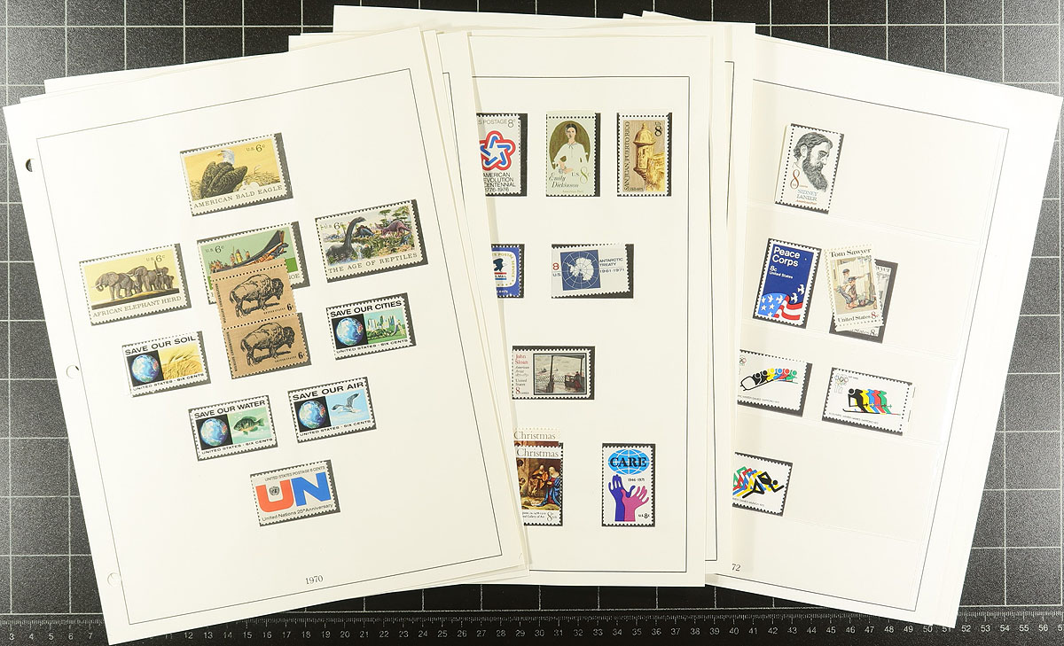 In-depth mostly mint collection 1970-2008, neatly arranged on a variety of album pages, both "hinged" and "hingeless" pages, sorted by time-period into folders. Includes the many large colourful sets, souvenir sheets etc from the period, with our estimated face value alone likely near US$800.00. A wonderful strong "foot in the door" collection, which would be hard to duplicate at our reasonable estimated value. Estimate =