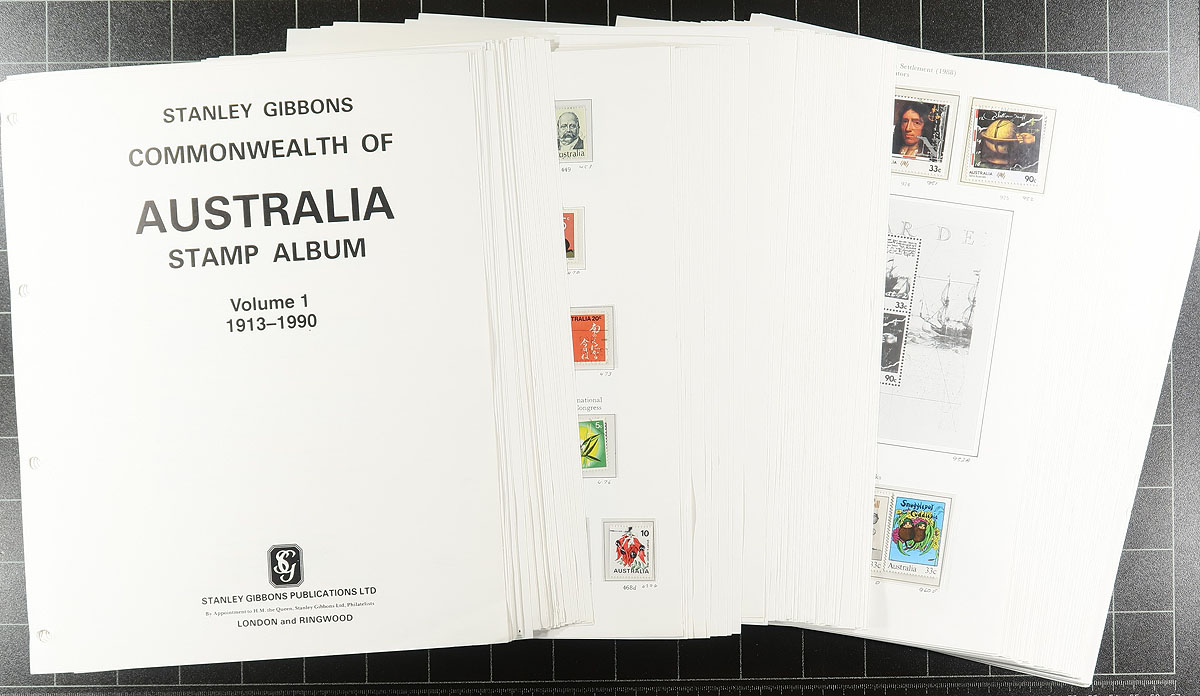 Used collection of Australian regular issues 1913-1995 in deluxe Stanley Gibbons padded album. About 90% complete for the period, almost all used with the odd mint (usually in mounts) mixed in throughout. A great "foot in the door" collection to be built upon, or take what you need to fill the holes in your own album. Owner's 2021 Scott US$2,876.35 =