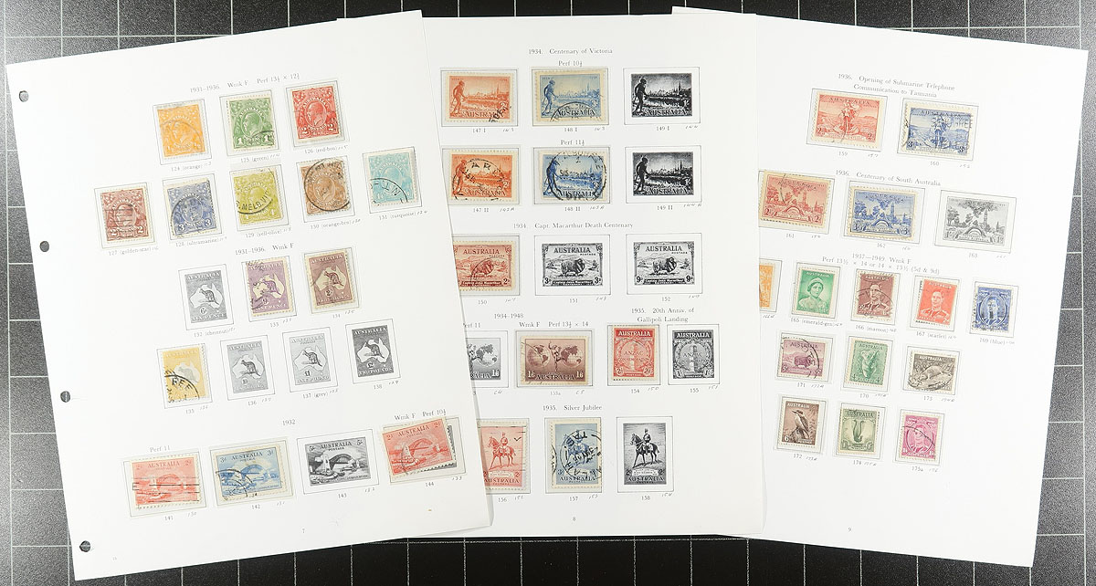 Used collection of Australian regular issues 1913-1995 in deluxe Stanley Gibbons padded album. About 90% complete for the period, almost all used with the odd mint (usually in mounts) mixed in throughout. A great "foot in the door" collection to be built upon, or take what you need to fill the holes in your own album. Owner's 2021 Scott US$2,876.35 =