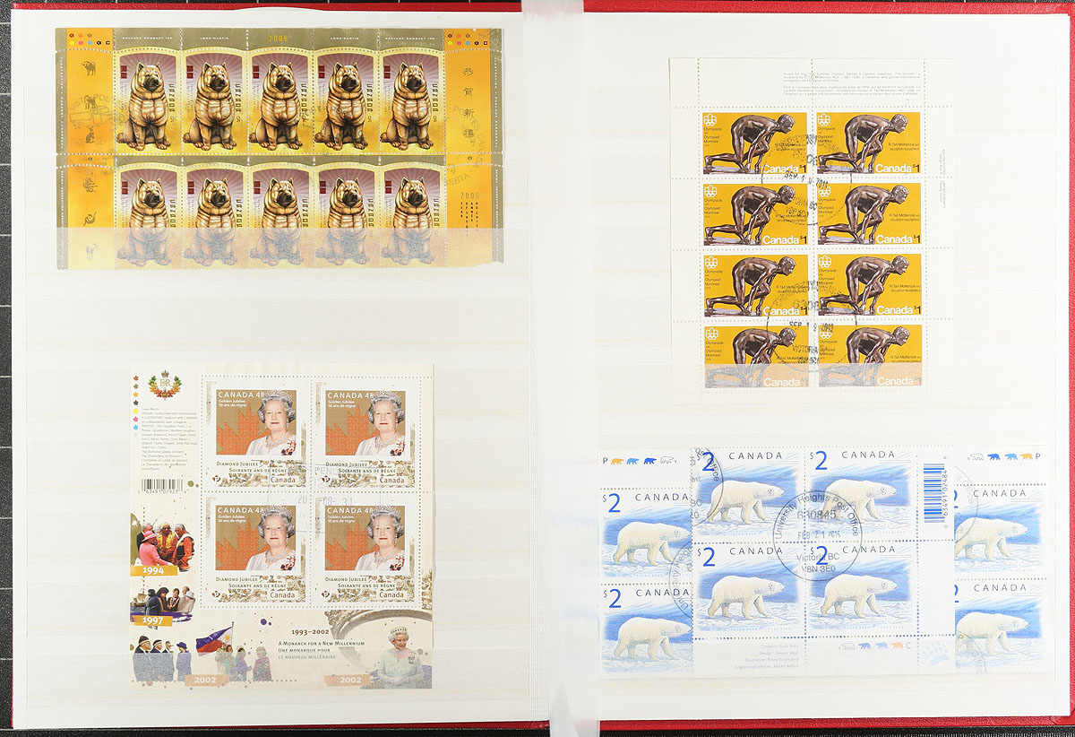 Used Blocks, Multiples, Souvenir Sheet Holding. A like-new 16-page Lighthouse brand stockbook. Seemingly to span the 1978 CAPEX series, up to 2015 UNESCO, with the owner identified each sheet with small sticky notes (on the sheets, can be removed with some TLC). Owner's catalogue value over $350.00. Estimate =