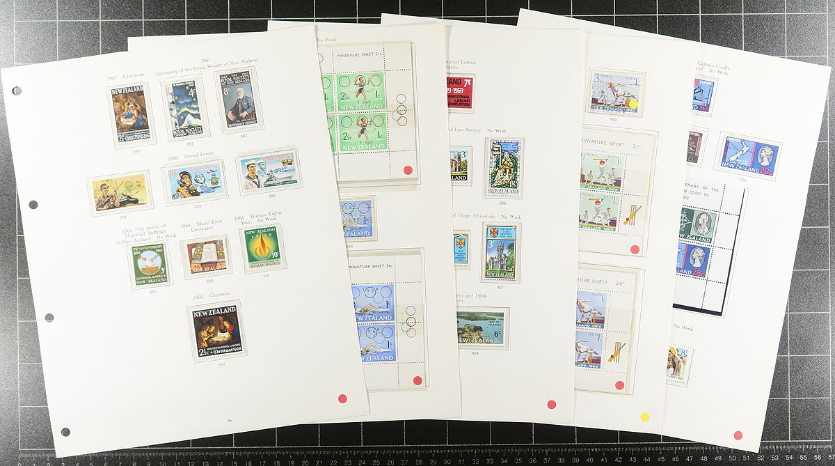 Mint and Used collection of New Zealand 1874-1975 (with pages to the beginning) in deluxe Stanley Gibbons padded album. About 90% complete for the period, with the majority of the earlier issues being used, before transitioning into mostly mint in the QEII era (in mounts, a mix of hinged/never hinged). A great "foot in the door" collection to be built upon, or take what you need to fill the holes in your own album. Owner's 2021 Scott US$1,533.10 =