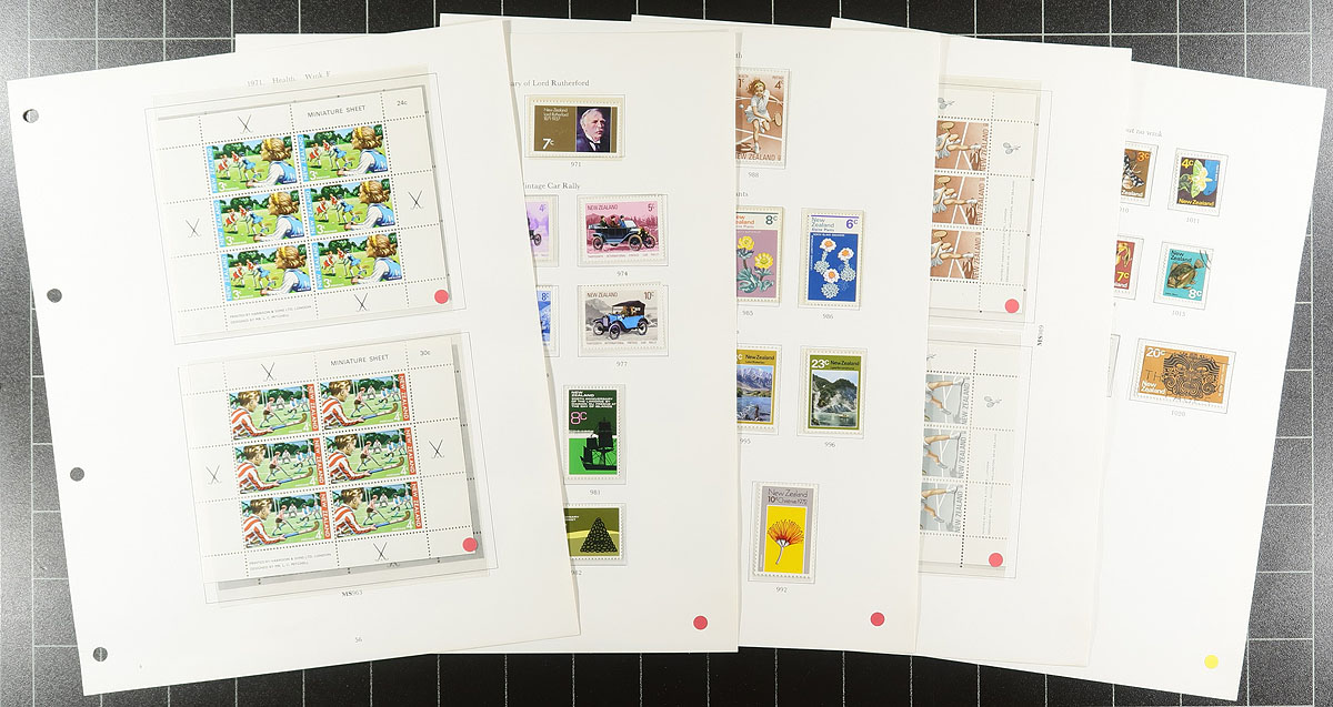 Mint and Used collection of New Zealand 1874-1975 (with pages to the beginning) in deluxe Stanley Gibbons padded album. About 90% complete for the period, with the majority of the earlier issues being used, before transitioning into mostly mint in the QEII era (in mounts, a mix of hinged/never hinged). A great "foot in the door" collection to be built upon, or take what you need to fill the holes in your own album. Owner's 2021 Scott US$1,533.10 =