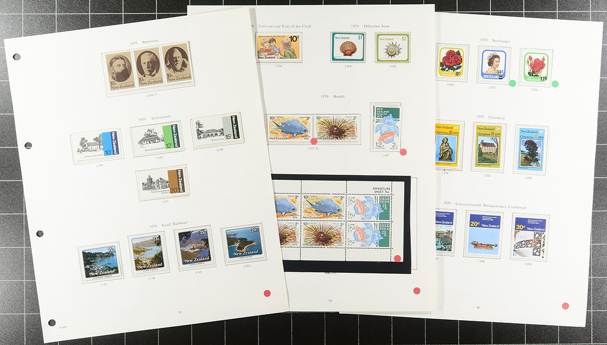 Mint and Used collection of New Zealand 1874-1975 (with pages to the beginning) in deluxe Stanley Gibbons padded album. About 90% complete for the period, with the majority of the earlier issues being used, before transitioning into mostly mint in the QEII era (in mounts, a mix of hinged/never hinged). A great "foot in the door" collection to be built upon, or take what you need to fill the holes in your own album. Owner's 2021 Scott US$1,533.10 =