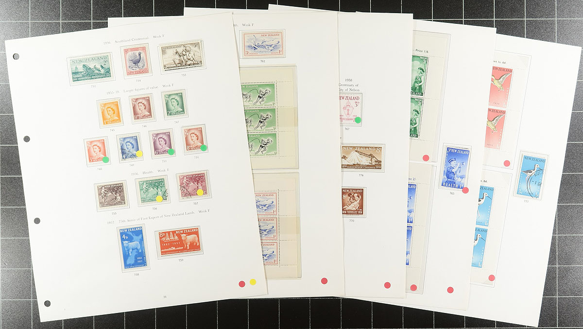 Mint and Used collection of New Zealand 1874-1975 (with pages to the beginning) in deluxe Stanley Gibbons padded album. About 90% complete for the period, with the majority of the earlier issues being used, before transitioning into mostly mint in the QEII era (in mounts, a mix of hinged/never hinged). A great "foot in the door" collection to be built upon, or take what you need to fill the holes in your own album. Owner's 2021 Scott US$1,533.10 =