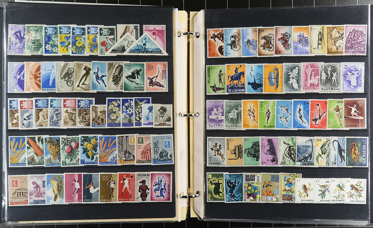 Europe Offering. Meticulously two-part offering, organized in binder and stock. The binder consists of French Andorra 1985 Romanesque Art Mint Sheetlet of 10, Hungary (507 different used and CTO, 1900-1981 including 2 mini-sheets), Poland (531 different, plus duplicated, mostly used and CTO 1919-1986 including a 1945 Red Cross sheetlet), Portugal (primarily) & Colonies (157 different, mint and used), Saar (42 different, mostly sed 1920-1952), San Marino (200 different, mint and used 1877-1983 and Switzerland (225 different, mint and used 1862-1998 including semi-postals. All of the beforementioned is nicely complimented with a stockbook, neatly organized and containing Czechoslovakia and Poland, with 1775 different (Czech is 1096 different, 1918-1992 mostly used including "Back of the Book" / Poland is 679 different, 1919-1976 mostly used). Well organized all-around. Estimate =