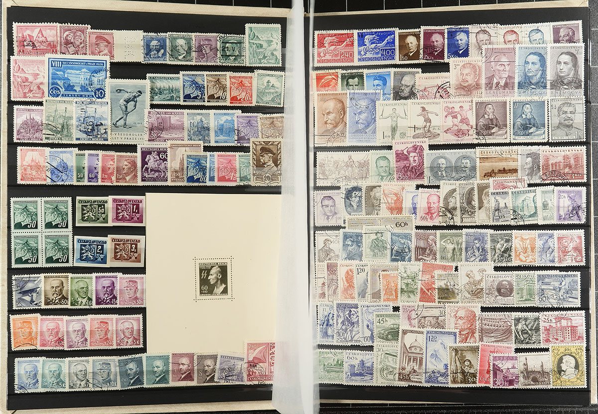 Europe Offering. Meticulously two-part offering, organized in binder and stock. The binder consists of French Andorra 1985 Romanesque Art Mint Sheetlet of 10, Hungary (507 different used and CTO, 1900-1981 including 2 mini-sheets), Poland (531 different, plus duplicated, mostly used and CTO 1919-1986 including a 1945 Red Cross sheetlet), Portugal (primarily) & Colonies (157 different, mint and used), Saar (42 different, mostly sed 1920-1952), San Marino (200 different, mint and used 1877-1983 and Switzerland (225 different, mint and used 1862-1998 including semi-postals. All of the beforementioned is nicely complimented with a stockbook, neatly organized and containing Czechoslovakia and Poland, with 1775 different (Czech is 1096 different, 1918-1992 mostly used including "Back of the Book" / Poland is 679 different, 1919-1976 mostly used). Well organized all-around. Estimate =