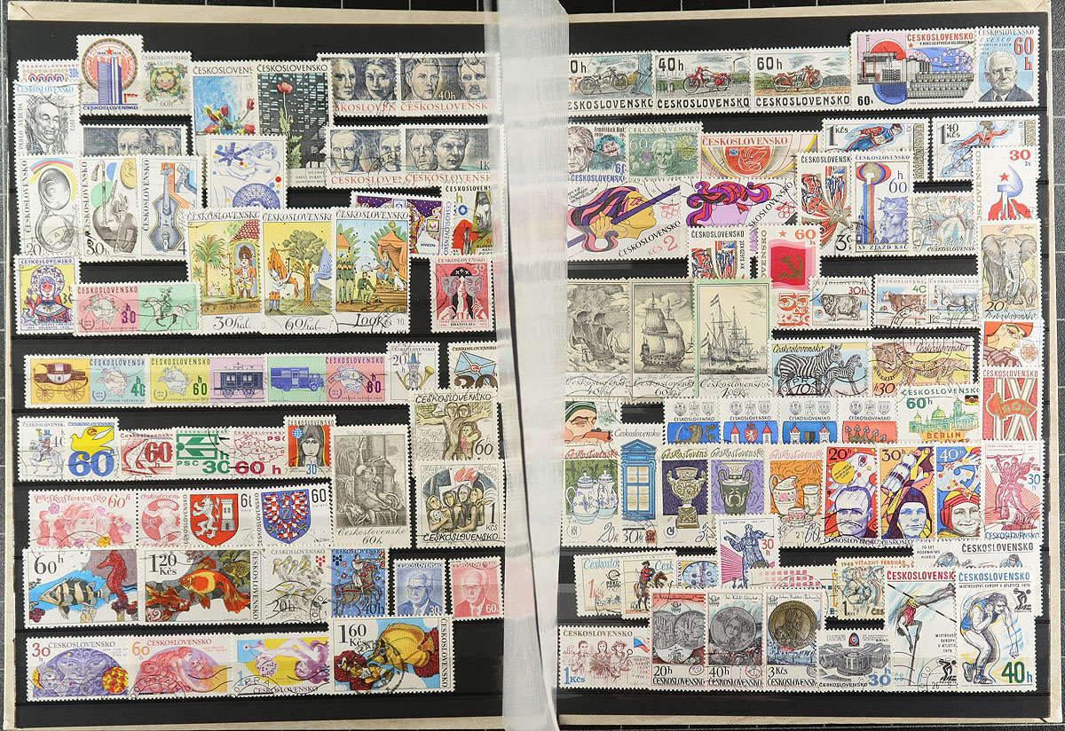 Europe Offering. Meticulously two-part offering, organized in binder and stock. The binder consists of French Andorra 1985 Romanesque Art Mint Sheetlet of 10, Hungary (507 different used and CTO, 1900-1981 including 2 mini-sheets), Poland (531 different, plus duplicated, mostly used and CTO 1919-1986 including a 1945 Red Cross sheetlet), Portugal (primarily) & Colonies (157 different, mint and used), Saar (42 different, mostly sed 1920-1952), San Marino (200 different, mint and used 1877-1983 and Switzerland (225 different, mint and used 1862-1998 including semi-postals. All of the beforementioned is nicely complimented with a stockbook, neatly organized and containing Czechoslovakia and Poland, with 1775 different (Czech is 1096 different, 1918-1992 mostly used including "Back of the Book" / Poland is 679 different, 1919-1976 mostly used). Well organized all-around. Estimate =