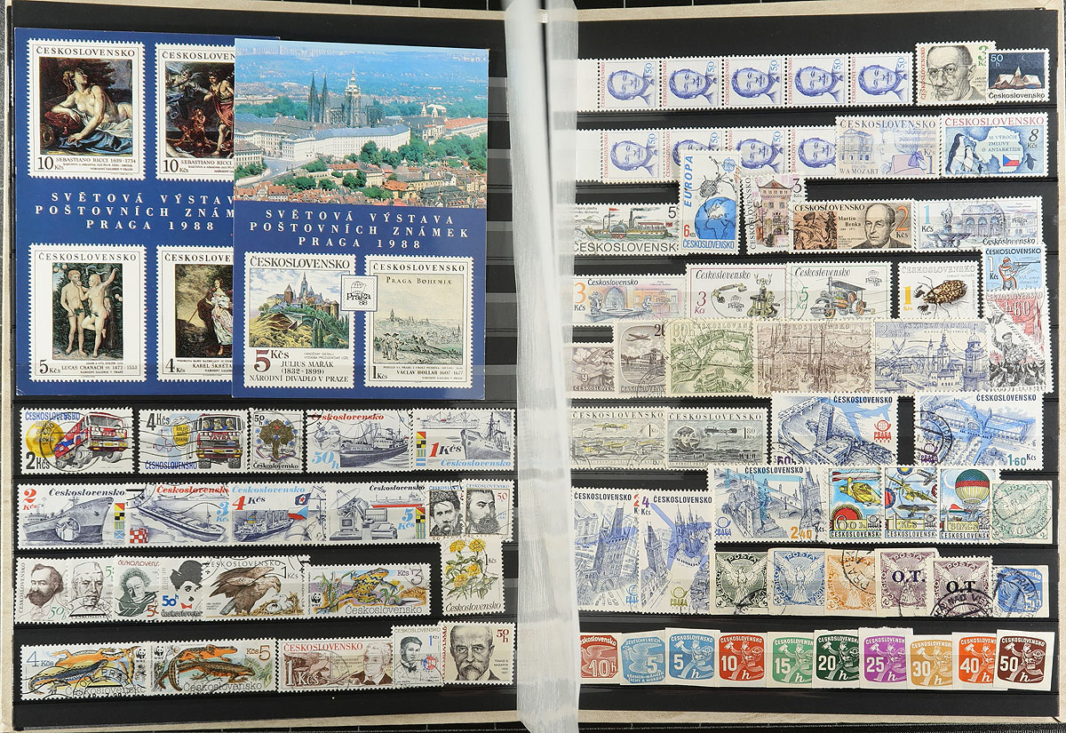 Europe Offering. Meticulously two-part offering, organized in binder and stock. The binder consists of French Andorra 1985 Romanesque Art Mint Sheetlet of 10, Hungary (507 different used and CTO, 1900-1981 including 2 mini-sheets), Poland (531 different, plus duplicated, mostly used and CTO 1919-1986 including a 1945 Red Cross sheetlet), Portugal (primarily) & Colonies (157 different, mint and used), Saar (42 different, mostly sed 1920-1952), San Marino (200 different, mint and used 1877-1983 and Switzerland (225 different, mint and used 1862-1998 including semi-postals. All of the beforementioned is nicely complimented with a stockbook, neatly organized and containing Czechoslovakia and Poland, with 1775 different (Czech is 1096 different, 1918-1992 mostly used including "Back of the Book" / Poland is 679 different, 1919-1976 mostly used). Well organized all-around. Estimate =