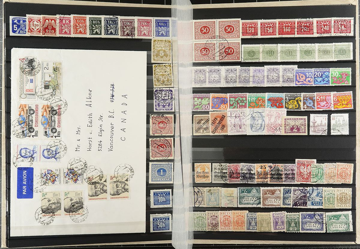 Europe Offering. Meticulously two-part offering, organized in binder and stock. The binder consists of French Andorra 1985 Romanesque Art Mint Sheetlet of 10, Hungary (507 different used and CTO, 1900-1981 including 2 mini-sheets), Poland (531 different, plus duplicated, mostly used and CTO 1919-1986 including a 1945 Red Cross sheetlet), Portugal (primarily) & Colonies (157 different, mint and used), Saar (42 different, mostly sed 1920-1952), San Marino (200 different, mint and used 1877-1983 and Switzerland (225 different, mint and used 1862-1998 including semi-postals. All of the beforementioned is nicely complimented with a stockbook, neatly organized and containing Czechoslovakia and Poland, with 1775 different (Czech is 1096 different, 1918-1992 mostly used including "Back of the Book" / Poland is 679 different, 1919-1976 mostly used). Well organized all-around. Estimate =