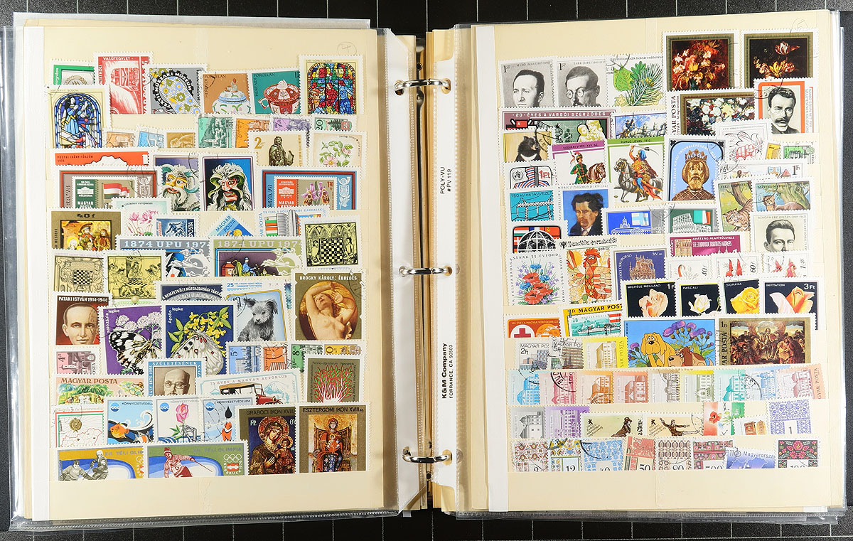Europe Offering. Meticulously two-part offering, organized in binder and stock. The binder consists of French Andorra 1985 Romanesque Art Mint Sheetlet of 10, Hungary (507 different used and CTO, 1900-1981 including 2 mini-sheets), Poland (531 different, plus duplicated, mostly used and CTO 1919-1986 including a 1945 Red Cross sheetlet), Portugal (primarily) & Colonies (157 different, mint and used), Saar (42 different, mostly sed 1920-1952), San Marino (200 different, mint and used 1877-1983 and Switzerland (225 different, mint and used 1862-1998 including semi-postals. All of the beforementioned is nicely complimented with a stockbook, neatly organized and containing Czechoslovakia and Poland, with 1775 different (Czech is 1096 different, 1918-1992 mostly used including "Back of the Book" / Poland is 679 different, 1919-1976 mostly used). Well organized all-around. Estimate =