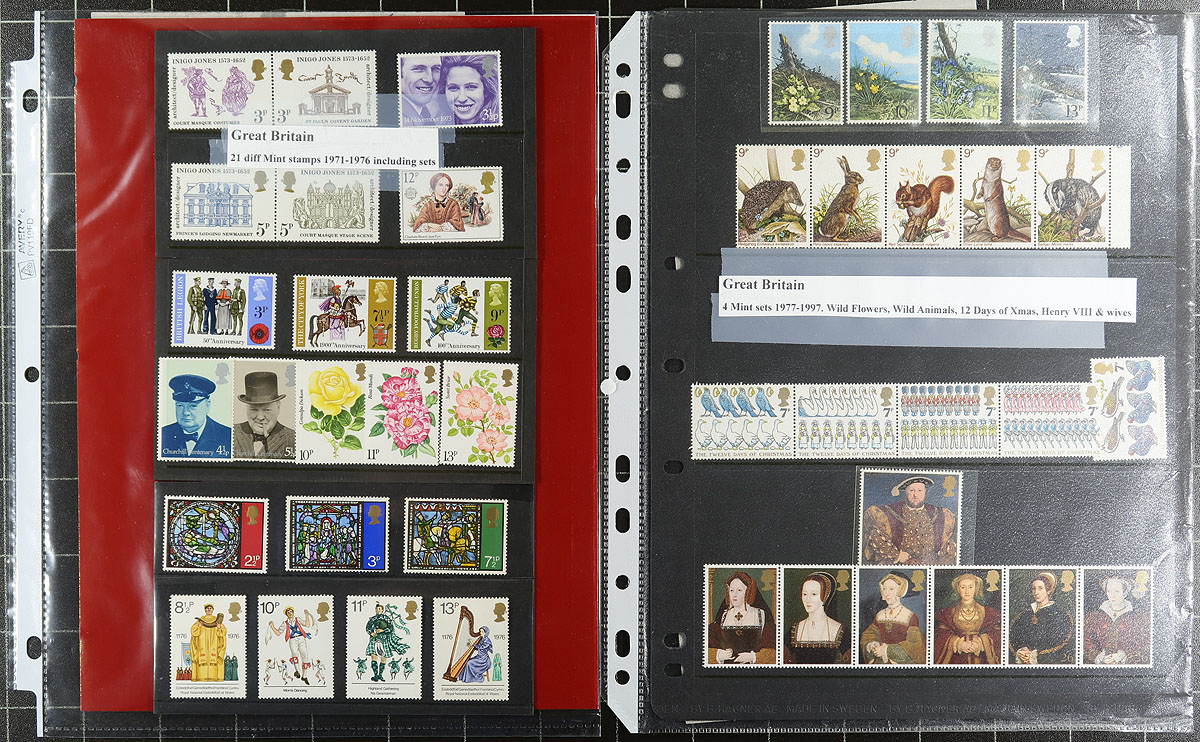 An enticing offering of Great Britain, in two distinct stanzas (binders). The first binder is a selection of QV to QEII, with 340 mint stamps, including 3x half-sheets, 6 new issue packs, QEII Golden Wedding FDC signed by Vera Lynn, Insects FDC signed by David Bellamy and Century in Pictures cover signed by Howard Keel. The second binder has over 1200 different used QV to 2010 issues (with a few early duplicates) including lots of George VI/QEII including the 1975 semi-postals, a nice example of the £10.00 "Britannia", a 1sh booklet, perfins, Machins, Regionals and finishing with 41 of the 1937 Coronation souvenir cinderalla stamps. Meticulously organized. Estimate =