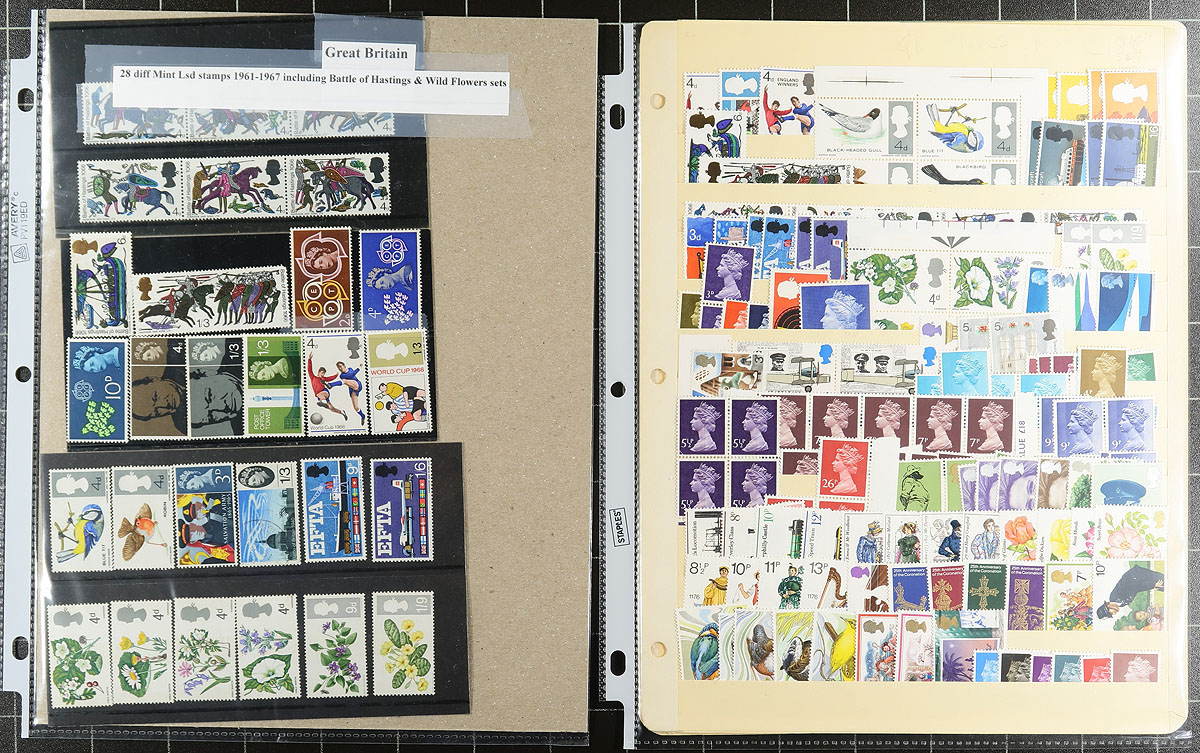 An enticing offering of Great Britain, in two distinct stanzas (binders). The first binder is a selection of QV to QEII, with 340 mint stamps, including 3x half-sheets, 6 new issue packs, QEII Golden Wedding FDC signed by Vera Lynn, Insects FDC signed by David Bellamy and Century in Pictures cover signed by Howard Keel. The second binder has over 1200 different used QV to 2010 issues (with a few early duplicates) including lots of George VI/QEII including the 1975 semi-postals, a nice example of the £10.00 "Britannia", a 1sh booklet, perfins, Machins, Regionals and finishing with 41 of the 1937 Coronation souvenir cinderalla stamps. Meticulously organized. Estimate =