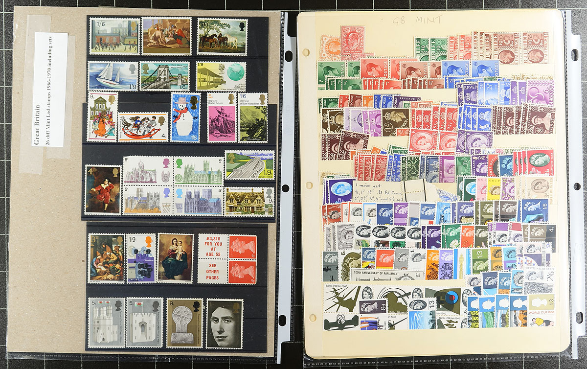An enticing offering of Great Britain, in two distinct stanzas (binders). The first binder is a selection of QV to QEII, with 340 mint stamps, including 3x half-sheets, 6 new issue packs, QEII Golden Wedding FDC signed by Vera Lynn, Insects FDC signed by David Bellamy and Century in Pictures cover signed by Howard Keel. The second binder has over 1200 different used QV to 2010 issues (with a few early duplicates) including lots of George VI/QEII including the 1975 semi-postals, a nice example of the £10.00 "Britannia", a 1sh booklet, perfins, Machins, Regionals and finishing with 41 of the 1937 Coronation souvenir cinderalla stamps. Meticulously organized. Estimate =