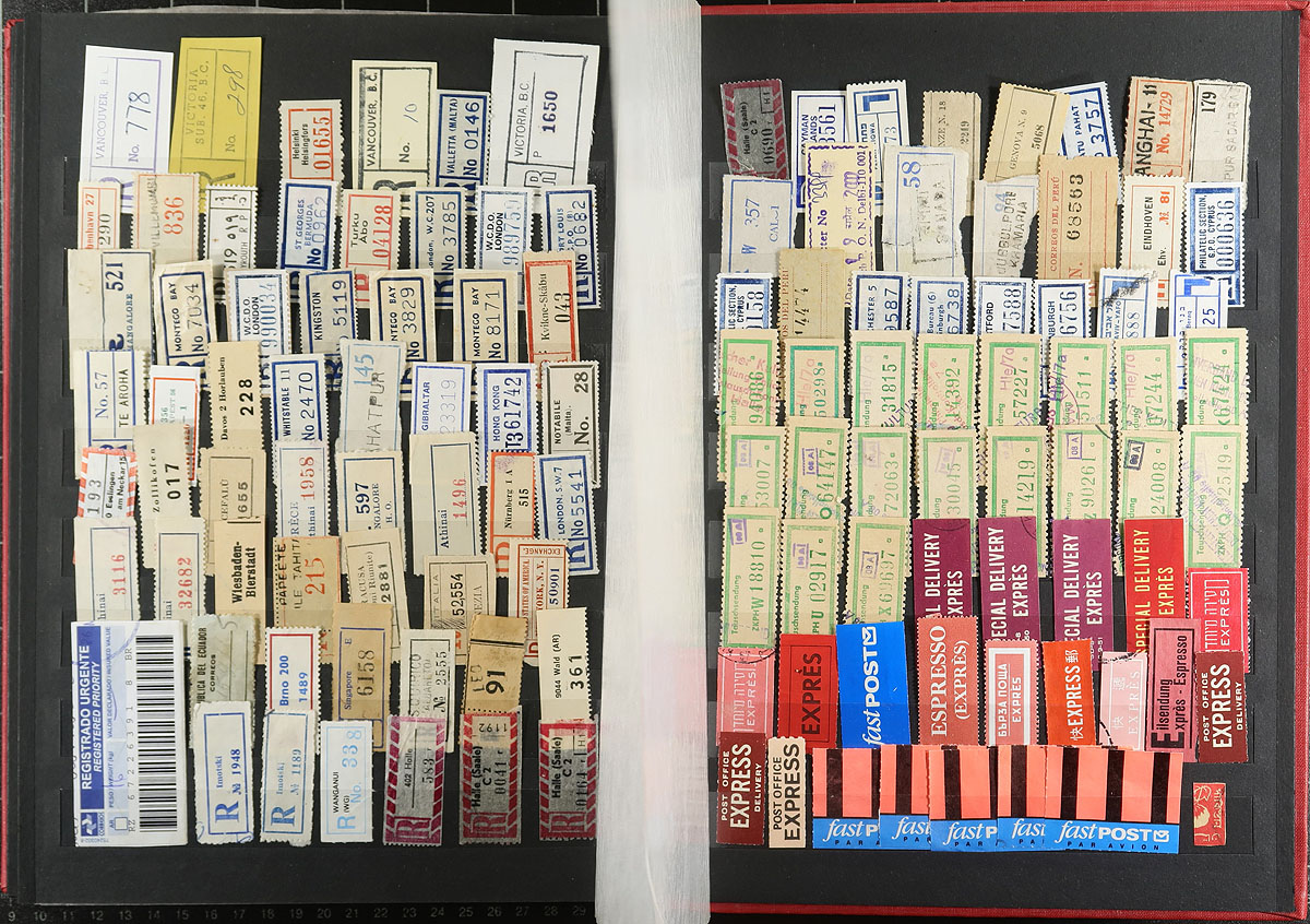 Meticulously organized two stockbook offering (both 32-page albums). The first stockbook contains a mint collection of 380 stamps, 15 blocks, 5 part-sheets, 48 miniature sheets, a strip and 9 booklets from dozens of countries, plus an additional bonus 3 pages of Registration, "Tauschensendung", Express, Priority and misc labels. The second stockbook contains GB and Commonwealth, with 1022 different used GB, 1862-2008 (including loads of commemorative issues, including the British "Millenium" series) and 977 different mint and used (plus 2 mini-sheets) Commonwealth stamps. Well organized and loads of valued throughout both books. Estimate =