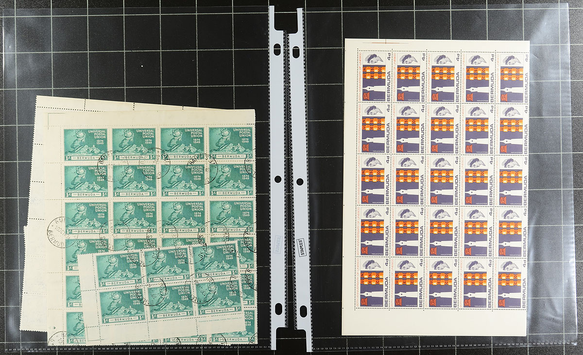 A binder containing stockpages from 4 distinct sections of the British Empire / Commonwealth, meticulously organized by a collector with an eye for detail. In no particular order, this lot includes. 1) Australian States, 161 stamps (43 different) and Australia, 1460 stamps (617 different), mostly used. 2) Bermuda mint sheets / part sheets of 37 issues from the 1948-1949, then 1966-1969 period. 3) New Zealand with 1089 stamps (553 different), mostly used + one booklet and one set of "Specimen" birds. 4) South Africa / RSA with 214 different used stamps, 1910-1995 plus 3 mint miniature sheets. A very tidy offering. Estimate =