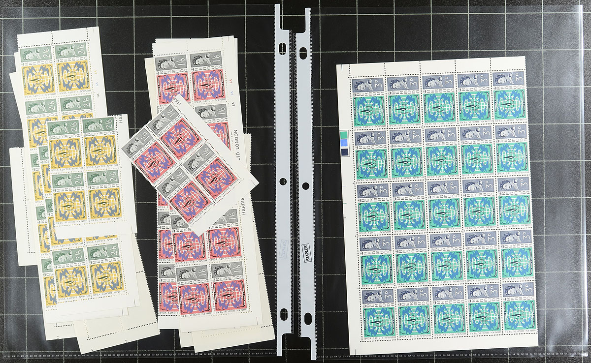 A binder containing stockpages from 4 distinct sections of the British Empire / Commonwealth, meticulously organized by a collector with an eye for detail. In no particular order, this lot includes. 1) Australian States, 161 stamps (43 different) and Australia, 1460 stamps (617 different), mostly used. 2) Bermuda mint sheets / part sheets of 37 issues from the 1948-1949, then 1966-1969 period. 3) New Zealand with 1089 stamps (553 different), mostly used + one booklet and one set of "Specimen" birds. 4) South Africa / RSA with 214 different used stamps, 1910-1995 plus 3 mint miniature sheets. A very tidy offering. Estimate =