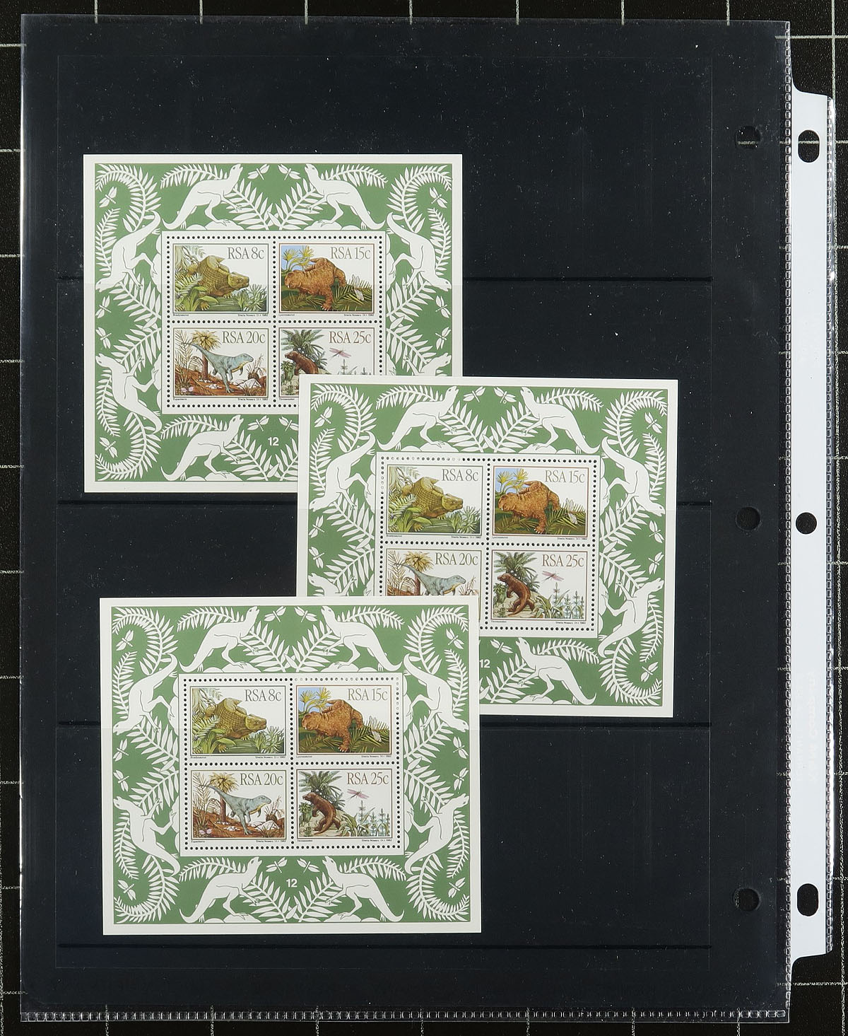 A binder containing stockpages from 4 distinct sections of the British Empire / Commonwealth, meticulously organized by a collector with an eye for detail. In no particular order, this lot includes. 1) Australian States, 161 stamps (43 different) and Australia, 1460 stamps (617 different), mostly used. 2) Bermuda mint sheets / part sheets of 37 issues from the 1948-1949, then 1966-1969 period. 3) New Zealand with 1089 stamps (553 different), mostly used + one booklet and one set of "Specimen" birds. 4) South Africa / RSA with 214 different used stamps, 1910-1995 plus 3 mint miniature sheets. A very tidy offering. Estimate =