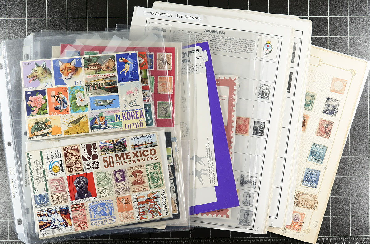 Duo of binders with well curated assembly of worldwide countries and "odds and ends". The first binder is the "world" with 945 different stamps comprising of Thailand (42 different used 1910-1993), United Nations (70 different, 1951-1967, plus one miniature sheet and 27 blocks), USA (492 different, 1870-2011 mostly used including 1 Hawaii), and USSR (341 different, 1875-1984 plus 3 miniature sheets and 1 corner block. The second binder contains a mixed bag of worldwide pages, packs including better Peru, Turkey and Yemen. Estimate =