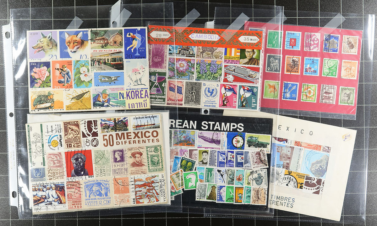Duo of binders with well curated assembly of worldwide countries and "odds and ends". The first binder is the "world" with 945 different stamps comprising of Thailand (42 different used 1910-1993), United Nations (70 different, 1951-1967, plus one miniature sheet and 27 blocks), USA (492 different, 1870-2011 mostly used including 1 Hawaii), and USSR (341 different, 1875-1984 plus 3 miniature sheets and 1 corner block. The second binder contains a mixed bag of worldwide pages, packs including better Peru, Turkey and Yemen. Estimate =