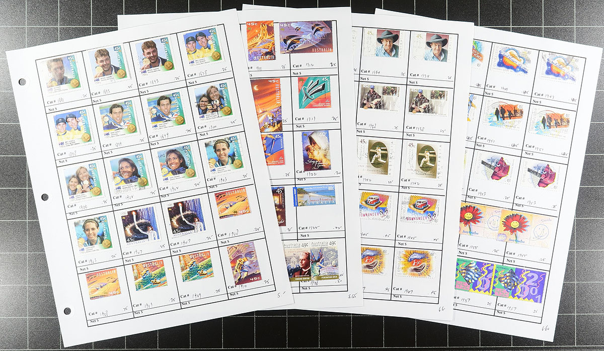 Accumulation of used Australia, 1913-2010, containing roughly 1,500 stamps in over 20 stock or album pages. The lot generally ranges from Scott #1/3288, including back of the book issues, noting roughly 40 Kangaroo issues, several KGV Heads, a decent selection of modern issues, and more. A spot check indicated some singles and sets cataloguing $10 to $20 and up, with owner's 2018 Scott catalogue value for the lot totaling US$1,598.00, leaving better finds for the dedicated collector. A nice lot that is fairly well organized, overall fine to very fine. Estimate =