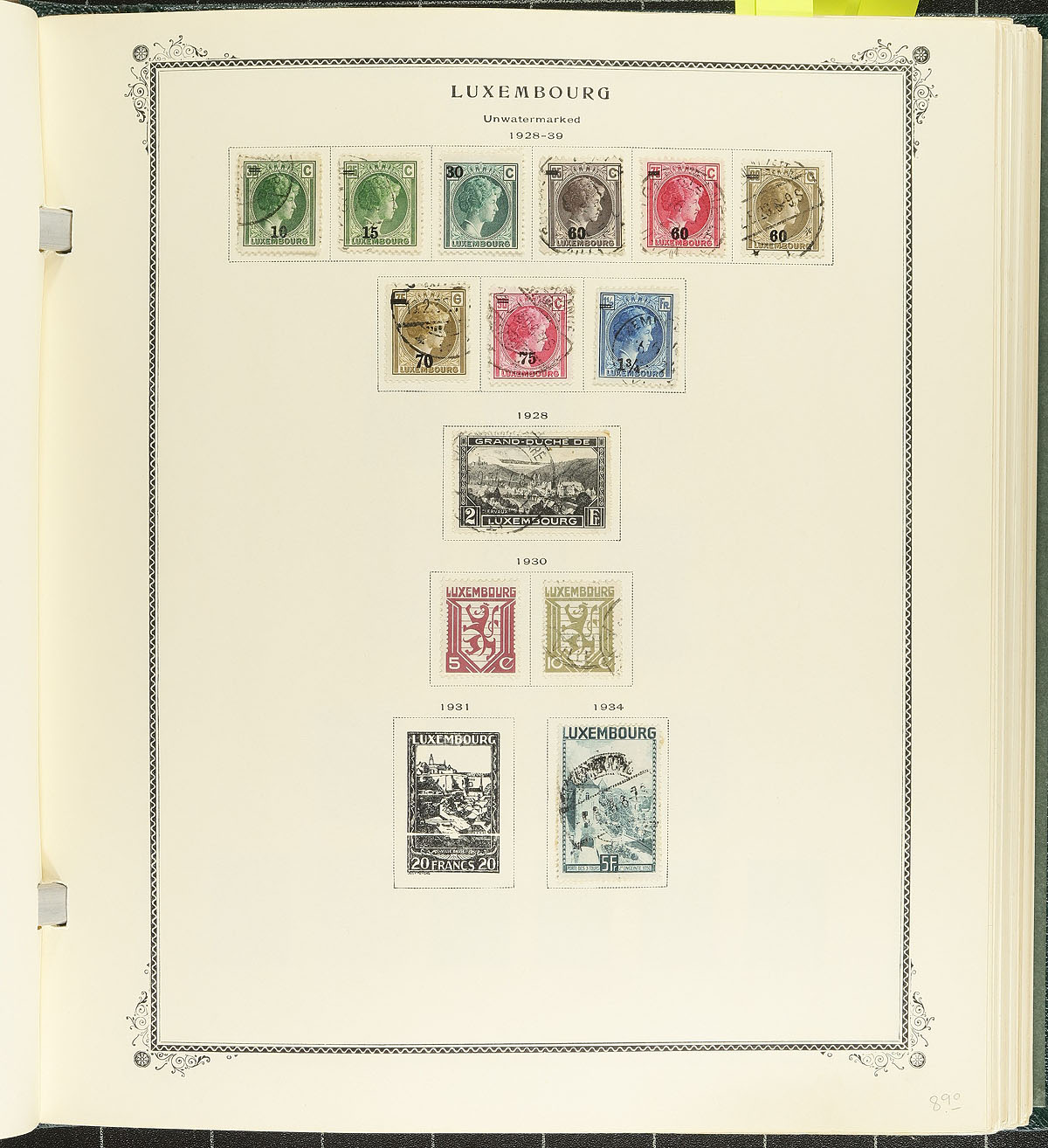 Nice collection of mint and used Luxembourg, 1880-1986, containing roughly 950 stamps in Scott album pages housed in a Scott Specialty album. The collection ranges from Scott #41/762, along with selections of semi-postals, airmails, and officials. A spot check indicated some singles, sets, and partial sets cataloguing $5 to $15 and up, noting mostly used issues up to 1950, with primarily mint material afterwards. Owner's 2018 Scott catalogue value for the collection totals US$779.00. A nice collection that should be continued, overall fine to very fine. Estimate =