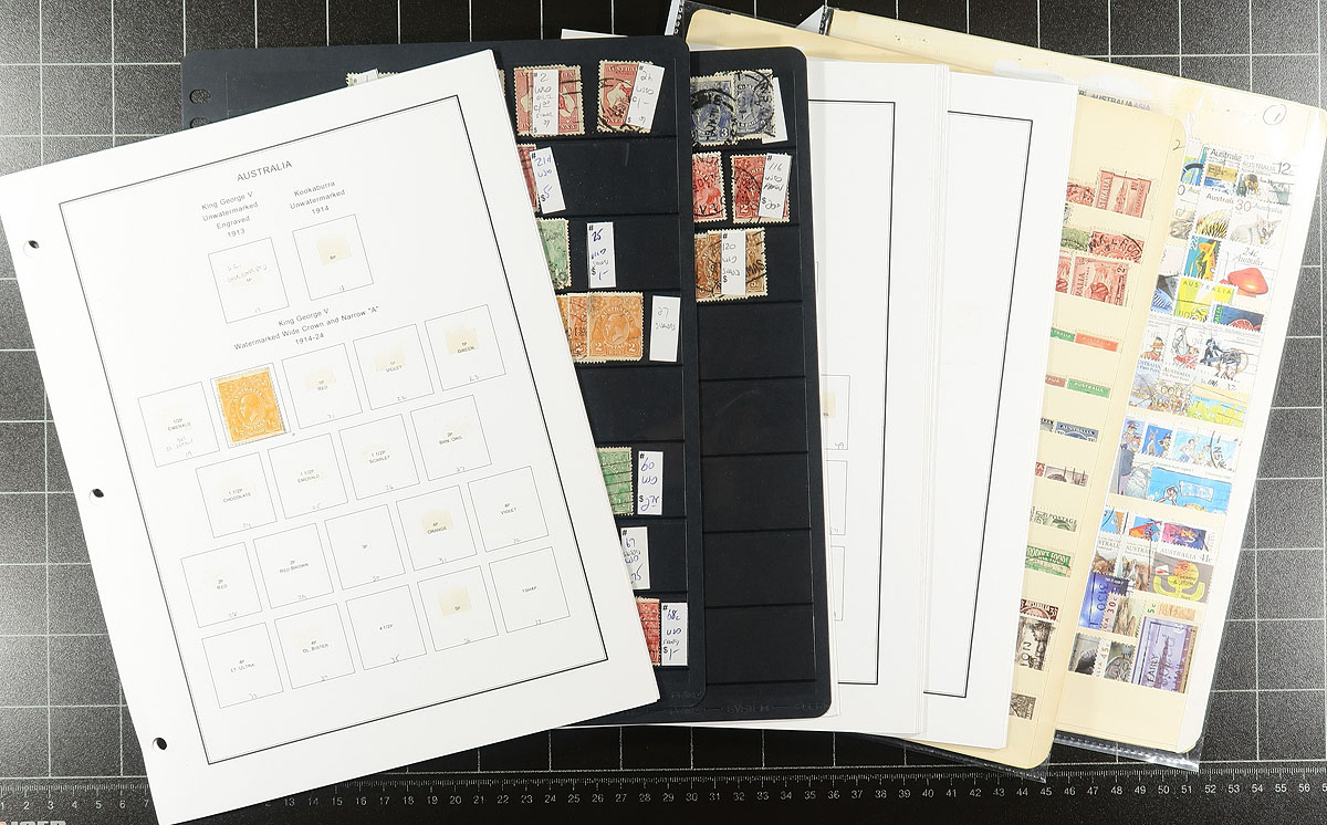 Nice collection of classic used Australia, 1913-1937, containing a few hundred stamps neatly arranged on homemade pages. The collection ranges from Scott #1/165, including a few sets and back of the book stamps, and two stock pages of Australia States issues, noting a decent selection of Kangaroos with #s 1-5, 9, 38-42, 45-46, 48-50, 52, along with King George V Heads, and sets cataloguing $10 to $30 and up each. Owner's 2023 Scott catalogue value for the collection totals US$902.00 (not including the Australia States pages). A nice collection that should be continued, overall fine to very fine. All pages shown online. Estimate =