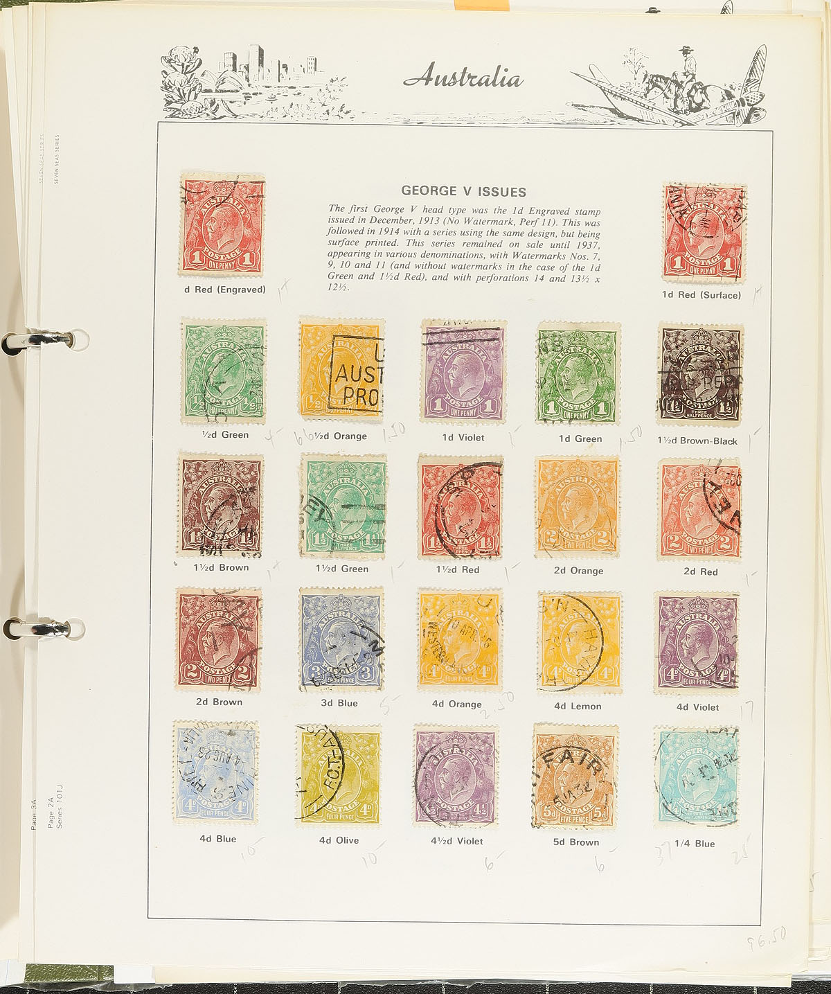 Nice collection of classic used Australia, 1913-1937, containing a few hundred stamps neatly arranged on homemade pages. The collection ranges from Scott #1/165, including a few sets and back of the book stamps, and two stock pages of Australia States issues, noting a decent selection of Kangaroos with #s 1-5, 9, 38-42, 45-46, 48-50, 52, along with King George V Heads, and sets cataloguing $10 to $30 and up each. Owner's 2023 Scott catalogue value for the collection totals US$902.00 (not including the Australia States pages). A nice collection that should be continued, overall fine to very fine. All pages shown online. Estimate =