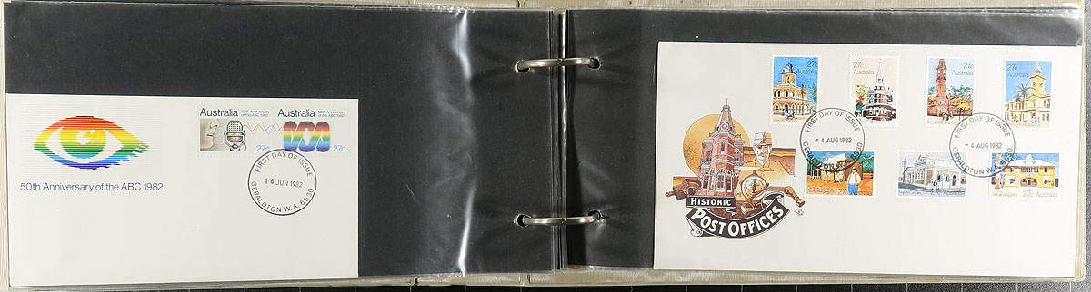 Group of roughly 425 Australia first day covers, 1960's-1990's, with a few covers possible on either side of the given range, in 3 albums with loose material. A cursory check indicated singles, primarily sets, souvenir sheet, and high denomination frankings, along with first day maximum cards and a few pieces of postal stationery. A nice colourful lot for all collectors, overall fine to very fine. Estimate =