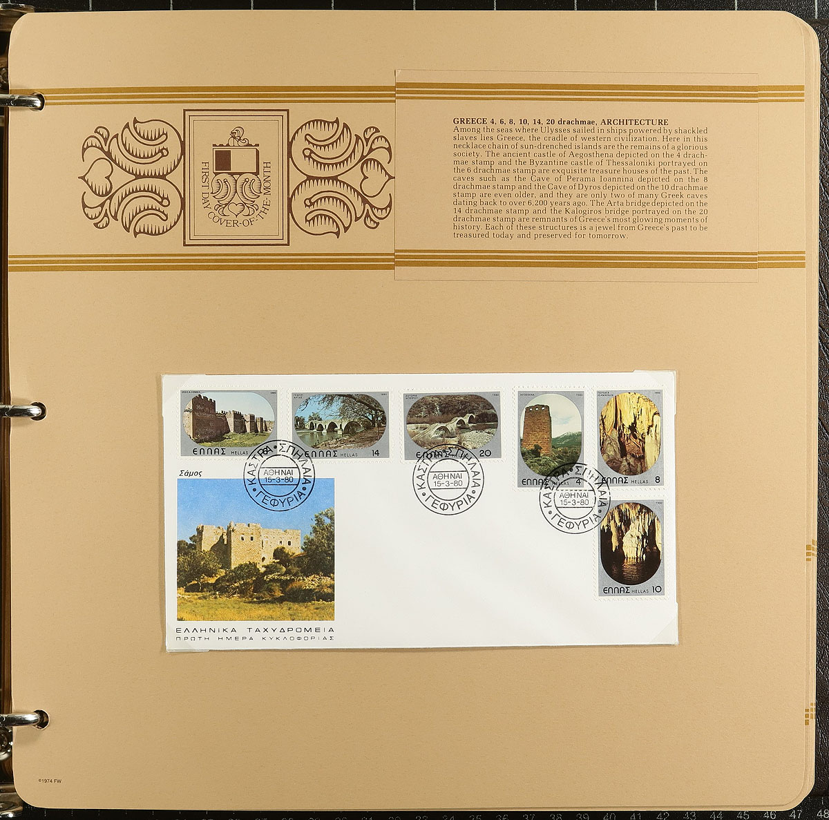 Cover Collections. Group of 5 collections containing roughly 325 covers filling a carton including: The International Collection of World Wildlife First Day Covers, First Day Covers From Around the World, and 3 volumes of Cover of the Month International Collections. All the material appears to range from the late 1970's to the early 1980's, and ideal for the cover and topical / thematic collector, overall fine to very nice. Estimate =