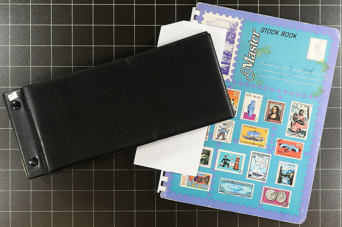 Carton full of useful supplies including: 3 Uni-Safe three ring binders with slipcases, 5 stockbooks of various sizes and figerations, loose stockpages, 4 mint sheet files, and more. Condition ranges from used to almost new, with original retail prices in the several hundreds of dollars. Useful and waiting for a new owner. Estimate =