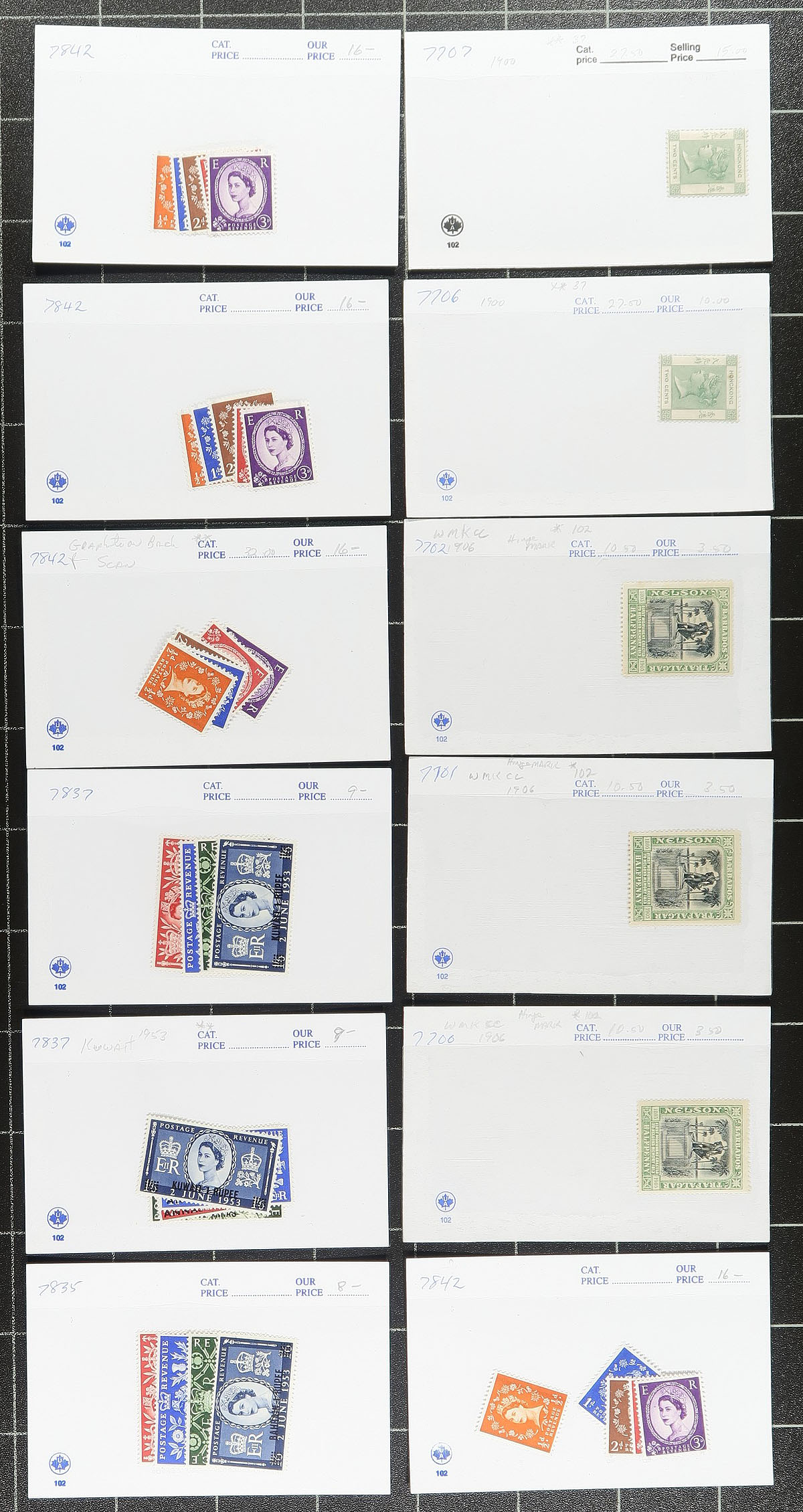 A bundle of 72x "102" cards, all with British Commonwealth singles, sets or assemblies. Each priced between $1-$10 each (with a few higher, up to $26.00), which is the retail pricing (rather than the catalogue value). Noted strength in Australia, New Zealand and Malta, with both mint and used throughout. Estimate =