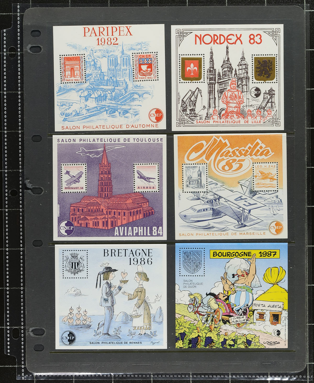 C.N. E. P. Souvenir Sheet Lot. Lightly duplicated VF NH quality selection of 30 mostly different 1980 to 1999 issue Yvert & Tellier listed C.N. E. P. souvenir sheets. These limited issue sheets were produced in conjunction with philatelic expositions and are often overlooked by collectors. 2021 Yvert & Yellier €877.00 in Canadian Dollars =