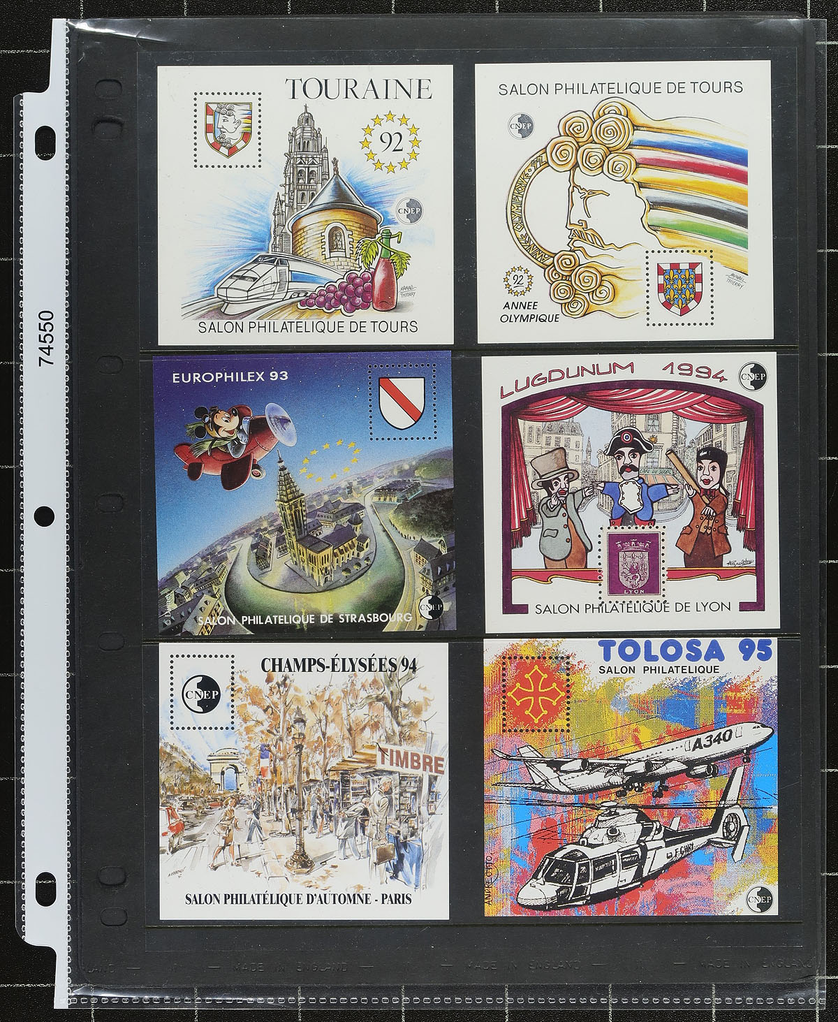 C.N. E. P. Souvenir Sheet Lot. Lightly duplicated VF NH quality selection of 30 mostly different 1980 to 1999 issue Yvert & Tellier listed C.N. E. P. souvenir sheets. These limited issue sheets were produced in conjunction with philatelic expositions and are often overlooked by collectors. 2021 Yvert & Yellier €877.00 in Canadian Dollars =