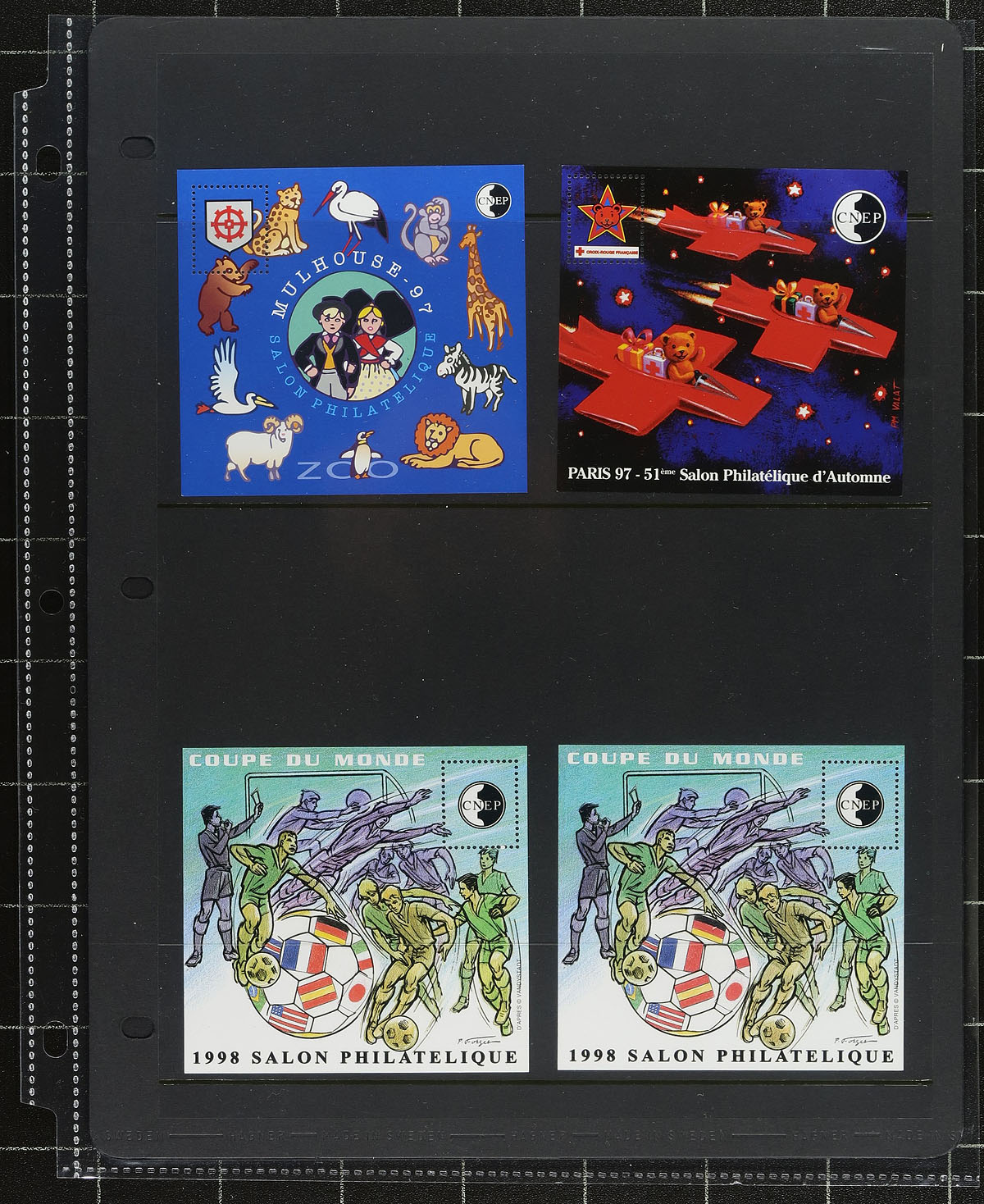 C.N. E. P. Souvenir Sheet Lot. Lightly duplicated VF NH quality selection of 30 mostly different 1980 to 1999 issue Yvert & Tellier listed C.N. E. P. souvenir sheets. These limited issue sheets were produced in conjunction with philatelic expositions and are often overlooked by collectors. 2021 Yvert & Yellier €877.00 in Canadian Dollars =