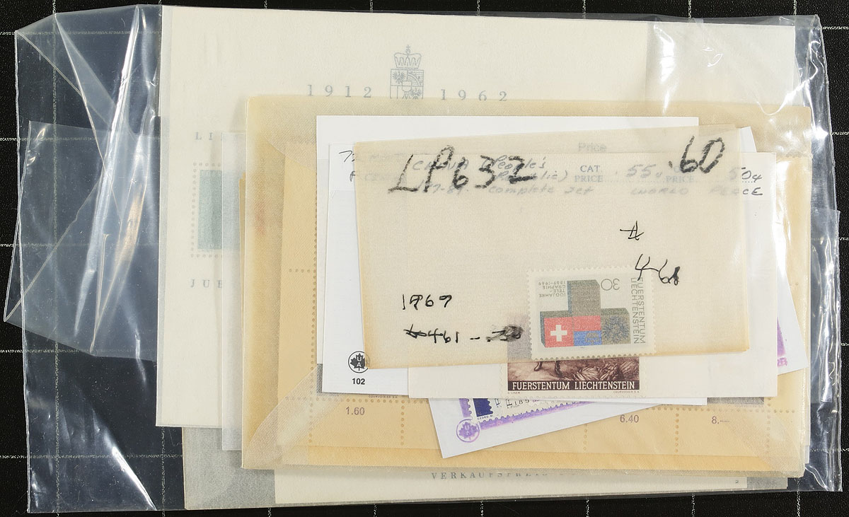 Mint accumulation of singles, sets and souvenir sheets, with a bit from the "back of the book." Most are 1917-1999 with a bit of minor duplication expected. Over US$500.00 in catalogue value (not counting the bit of used that snuck in), with substantial face value amongst the late-century issues. To help you organize some of this material there is a "Borek" springback album with regular pages to the mid-1940's and then hingeless to 1975 (with Officials to 1968). In lovely condition. Estimate =