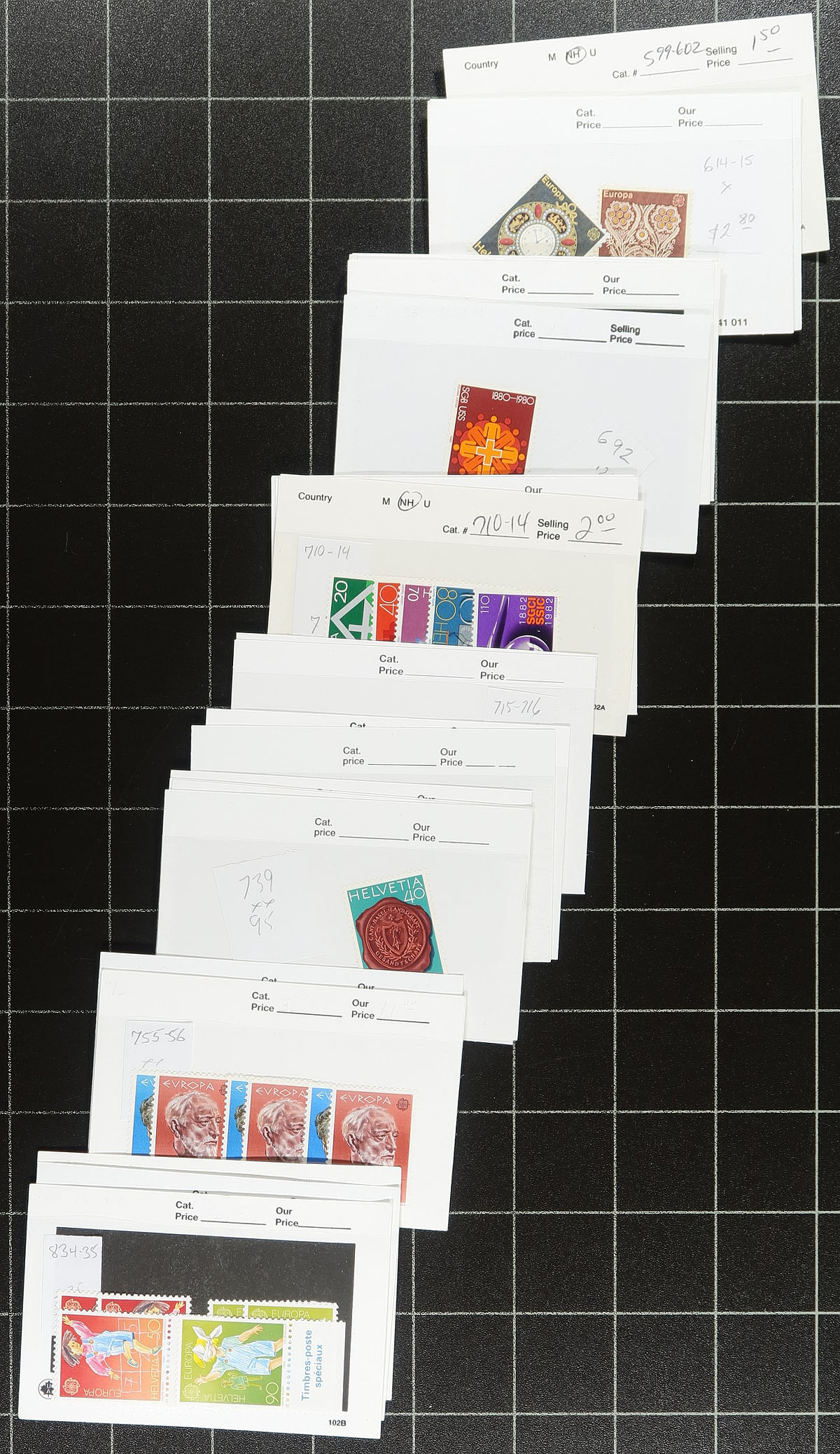Mint collection starter group, with an assortment of former bidboard lots, dealer cards, and some other miscellany (semi-postal souvenir sheet #B178, a couple of pages of modern booklets). Mostly 20th century issues, with a mix of definitives, commemoratives and "back of the book". Fresh appearance, with a mix of hinged and never hinged. Total catalogue value will be several hundred dollars. Estimate =