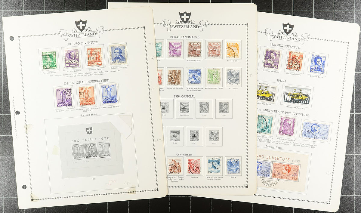 Used "back of the book" accumulation (with only a few "regular issues"), strong in semi-postals. On album and stock pages from a range of sources (meaning some duplication can be expected). Decent condition and lots of nice cancels, with catalogue values that add up quickly. Amongst all this material one could build a substantial collection of Pro-Juventute and Pro-Patria issues! Estimate =